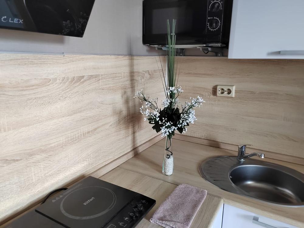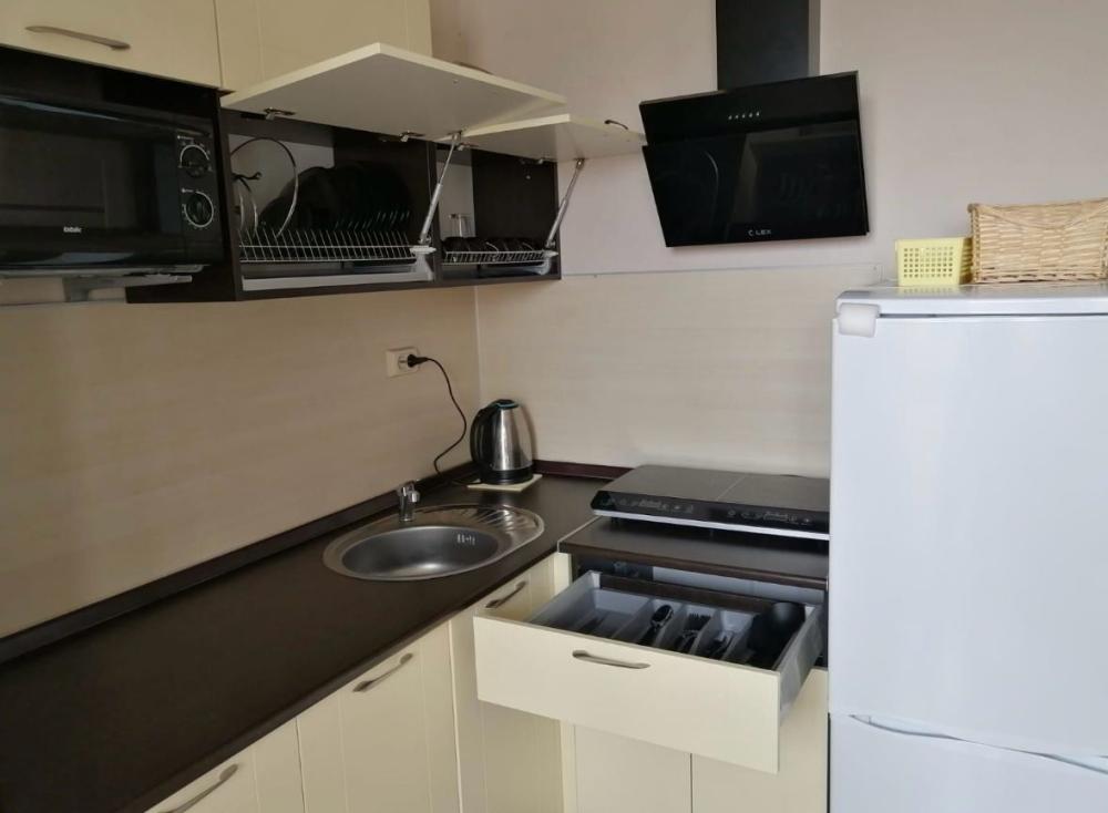 Апартаменты с современным ремонтом в районе аэропорта Кольцово. Удобства в квартире: Комната: Двуспальная кровать с ортопедическим матрасом, два кресла-кровати, рабочее место с письменным столом, телевизор с кабельным подключением, бесплатный Wi-Fi, полки и шкаф для хранения личных вещей. Кухня: Кухонный гарнитур, СВЧ, холодильник, индукционная плитка, вся необходимая посуда. Ванная комната: душ, стиральная машина, фен по запросу. Большая лоджия для отдыха в летнее время.