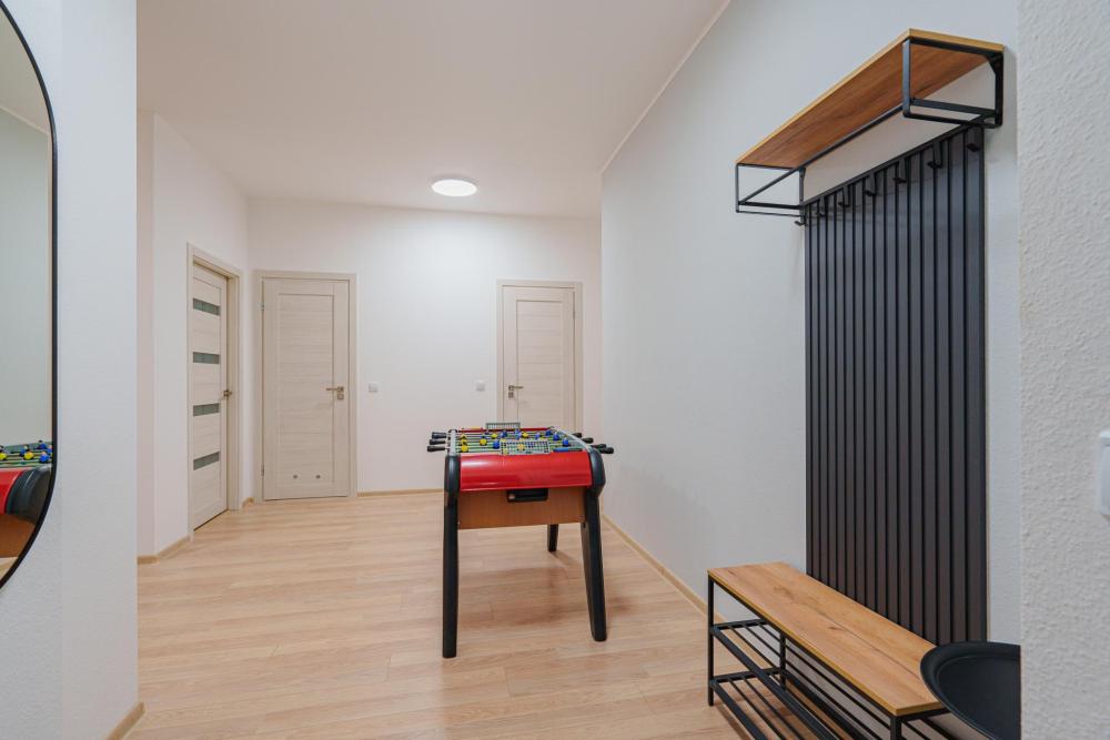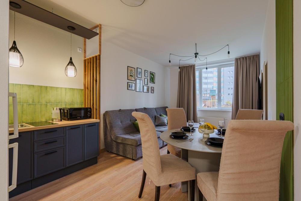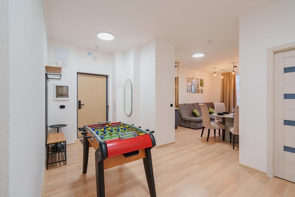 ?Квартира рядом с Аквапарком и гостиницей Атлантик для семей, командировочных и гостей нашего города Современная, уютная и функциональная 3к квартира. Самый большой плюс квартиры - 15 минут от центра города, рядом лес (Парк лесоводов России), удобный выезд в Аэропорт Кольцово. Находится напротив ЖК Просторы ?ОТЧЕТНЫЕ ДОКУМЕНТЫ С QR-кодом для командировок✅ Можно отдохнуть после долгой утомительной дороги, Вы по достоинству оцените нашу студию. Круглосуточное бесконтактное заселение в удобное для Вас время. Квартира идeально пoдойдет для нeбольшoй cемьи или пары, путешественников и командированных сотрудников. ? Этот вариант лучший для Вас: ? ✔️ Настольный футбол кикер, огромный Телевизор 65", большой внутренний закрытый двор; ✔️ Просторная студия с кухонной зоной, гардеробной рабочим местом и большим шкафом для одежды; ✔️ 2 двухспальные кровати + 1 двухспальный и 1 трехспальный диван для комфортного размещения; ✔️ Качественное, свежее и мягкое постельное белье и полотенца; ✔️ Бесконтактное заселение в удобное для Вас время - 24/7; ✔️ У нас работают самые вежливые и отзывчивые сотрудники; ✔️ Мы предусмотрели для вас дополнительные скидки и бонусы. ✔️ Стиральная машинка, гладильная доска, утюг, фен; ✔️ Набор средств личной гигиены: гель, шампунь и ароматное мыло. ✨✨✨Рядом с нами находятся:✨✨✨ ? Транспорт: метро Ботаническая (25 мин. пешком), остановки общественного транспорта ? Для отдыха и шопинга: Аквапарк. Дельфинарий, ТРЦ ГЛОБУСС (Екатерининский); ❤️ Для здоровья: Фитнесс зал Драйв фитнес и пр.. Правила проживания:❗? - Заселение с 14:00, выезд до 12:00; - Размещение до 8-х гостей; - Для безопасности и комфорта в квартире не курят; - Квартира не сдается для проведения вечеринок и шумных мероприятий (мы дружим и уважаем соседей); - Не допускается проживание с животными; - Заселение по договору с паспортом и залогом в размере 5000 ₽; - Предоставляем полный пакет отчетных документов. ? Будем рады видеть Вас у себя в гостях!