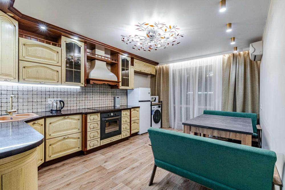 Комната-студия в трехкомнатной квартире. Для комфортного проживания в квартире имеется все необходимое: двуспальная кровать, кресло-кровать, шкаф, телевизор, утюг, гладильная доска, wi-fi; оборудованная кухня с плитой , духовкой и посудомоечной машиной, посуда для приготовления, постельное белье, полотенца, приветственный гигиенический набор, чайный набор, фен, кресло-кровать. Квартира оснащена общей кухней и двумя общими ванными комнатами