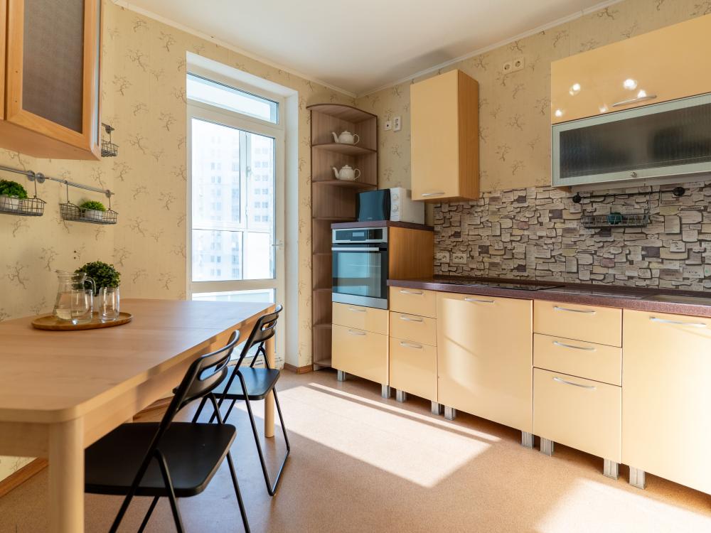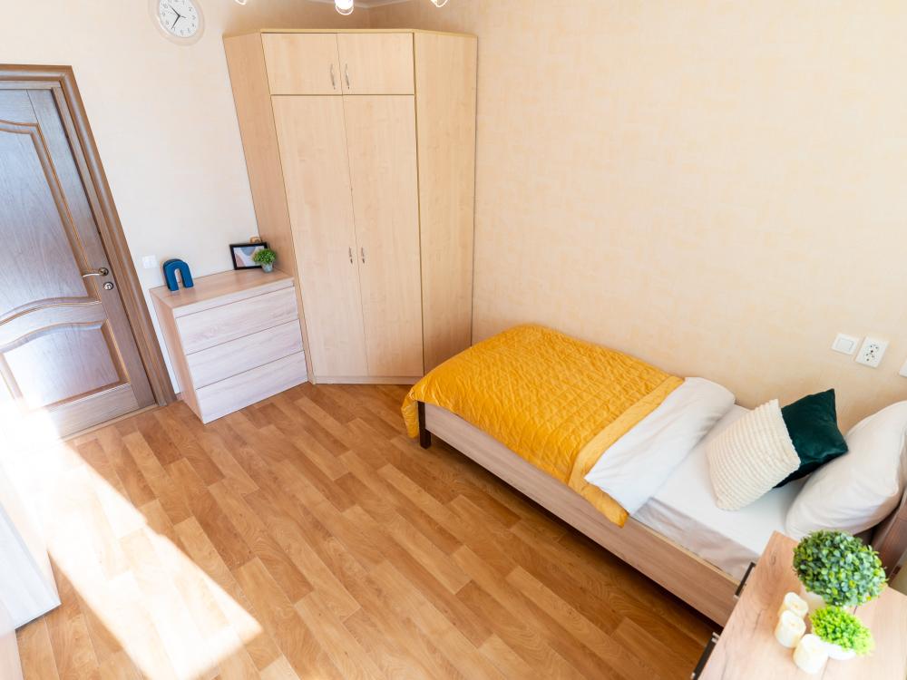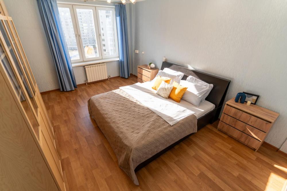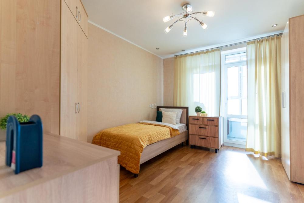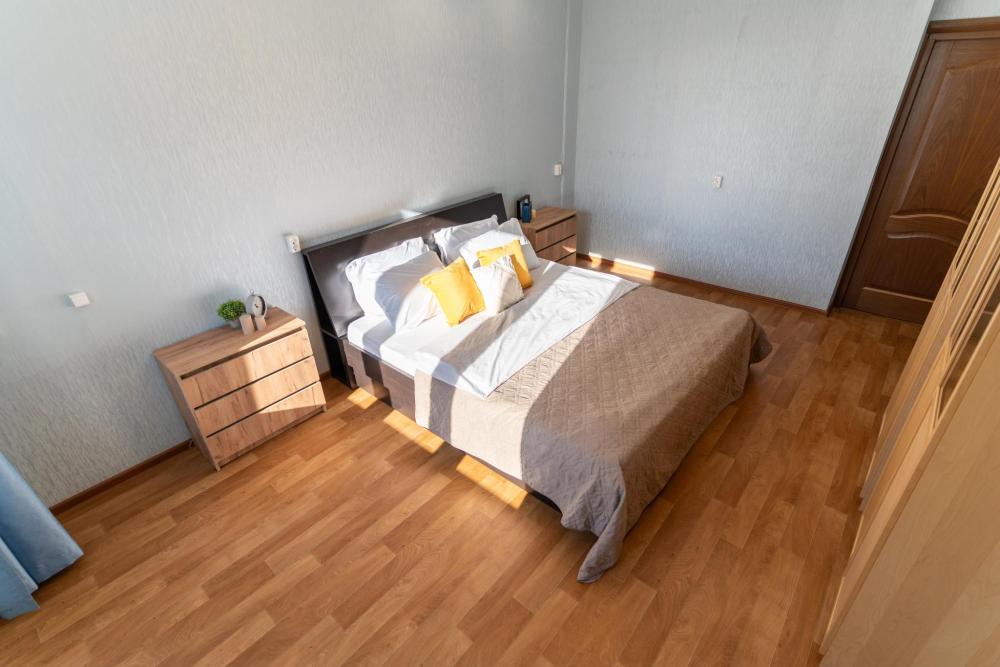 С удовольствием представляем вам стильную двухкомнатную квартиру с двумя отделенными спальнями, кухней и балконом. Свежий современный ремонт в песочных тонах с современной техникой и мебелью. Апартамент предназначен для размещения 8 гостей. ✅ Мы подготовили все для вашего комфортного пребывания: - Спальные места: 2 двуспальные кровати, 2 двуспальных дивана - Wi-fi - Телевизор со смарт-ТВ - Кровати уже заправлены чистым и выглаженным постельным бельём. - Кухонная зона оборудована всей необходимой бытовой техникой и посудой. - Чай, сахар. - Индивидуальные ванные принадлежности для каждого гостя. - Фен, утюг, стиральная машина.