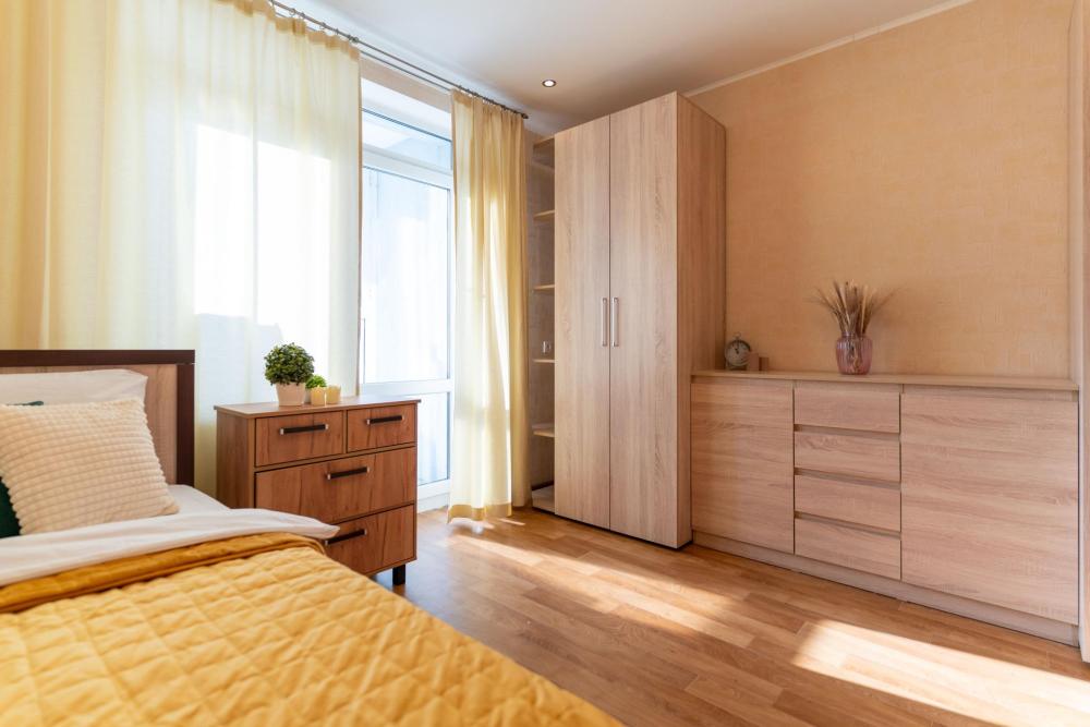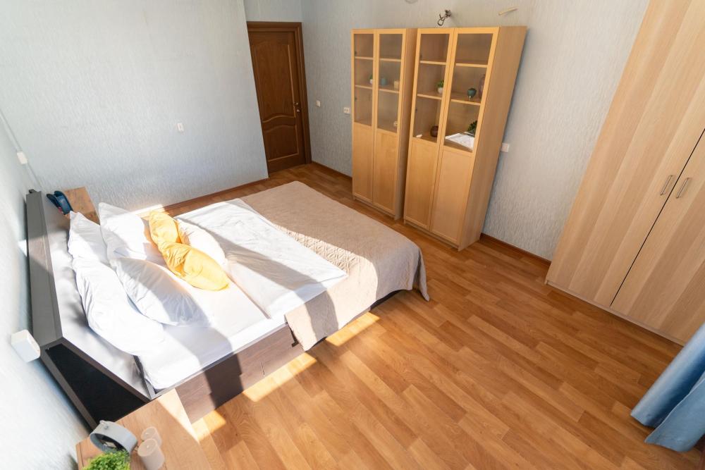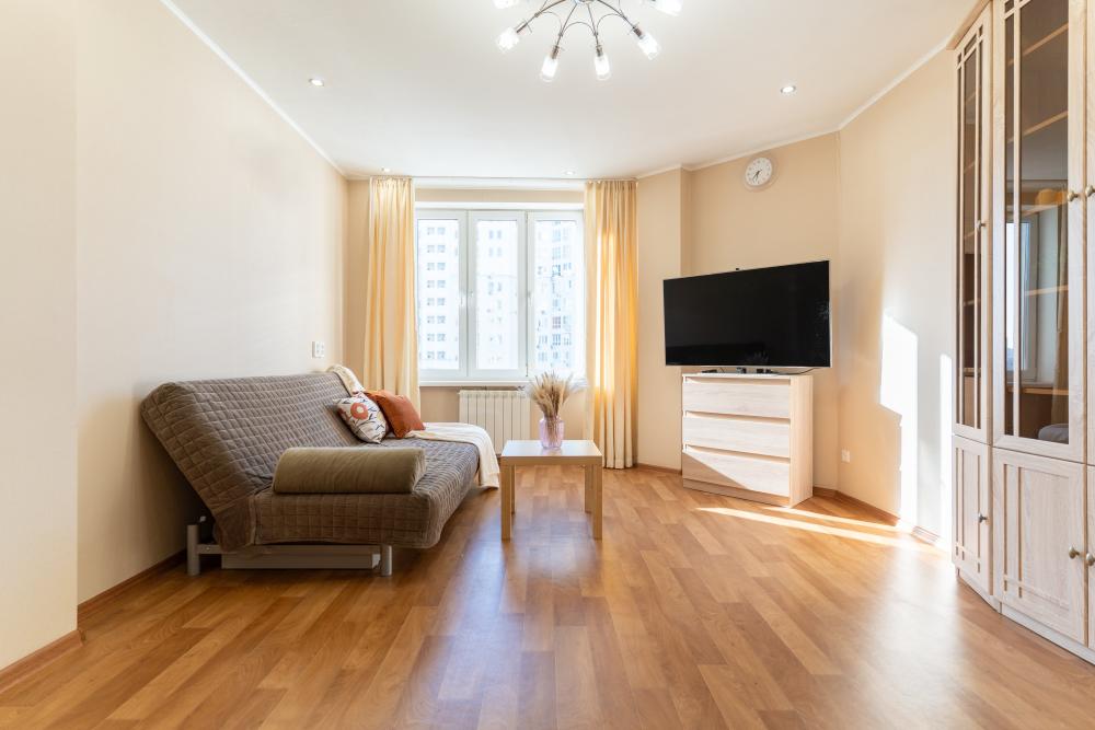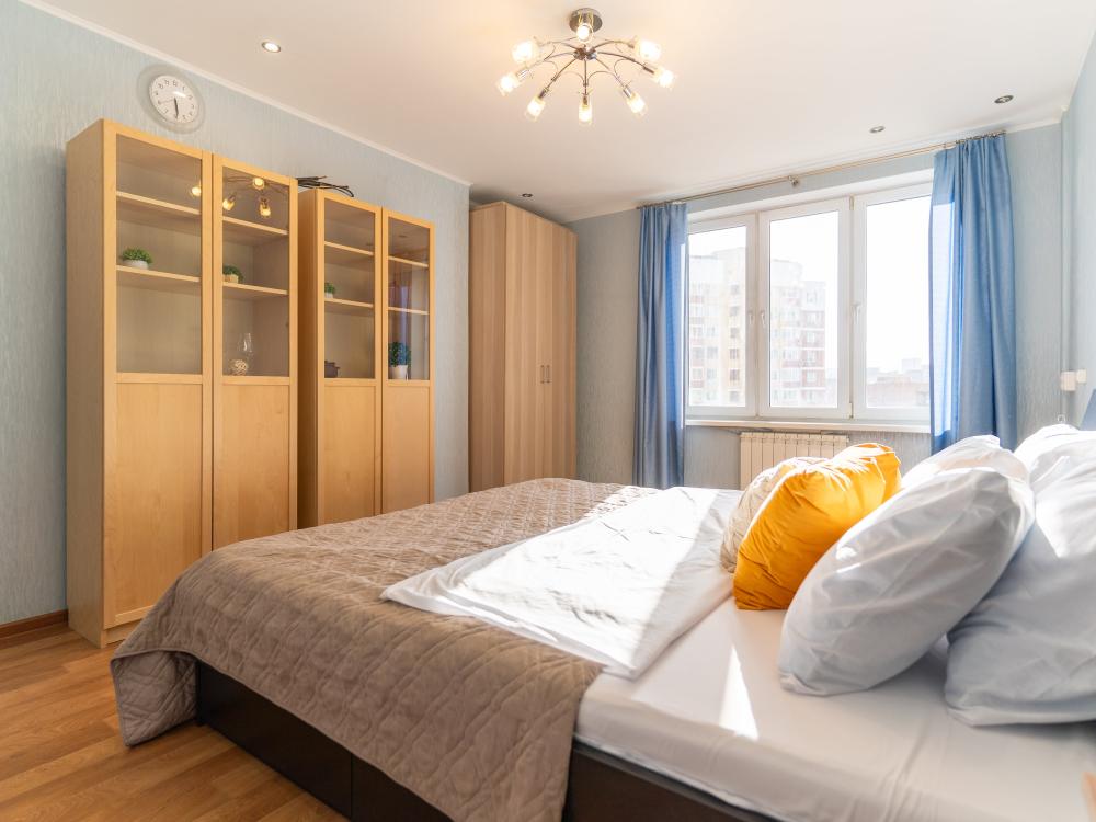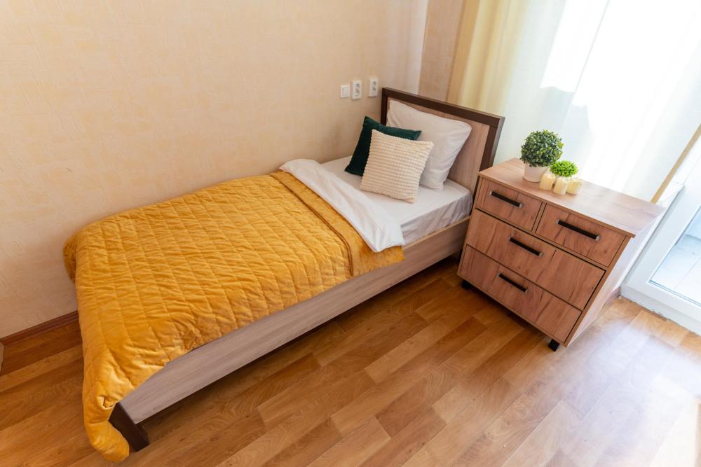 С удовольствием представляем вам стильную двухкомнатную квартиру с двумя отделенными спальнями, кухней и балконом. Свежий современный ремонт в песочных тонах с современной техникой и мебелью. Апартамент предназначен для размещения 8 гостей. ✅ Мы подготовили все для вашего комфортного пребывания: - Спальные места: 2 двуспальные кровати, 2 двуспальных дивана - Wi-fi - Телевизор со смарт-ТВ - Кровати уже заправлены чистым и выглаженным постельным бельём. - Кухонная зона оборудована всей необходимой бытовой техникой и посудой. - Чай, сахар. - Индивидуальные ванные принадлежности для каждого гостя. - Фен, утюг, стиральная машина.