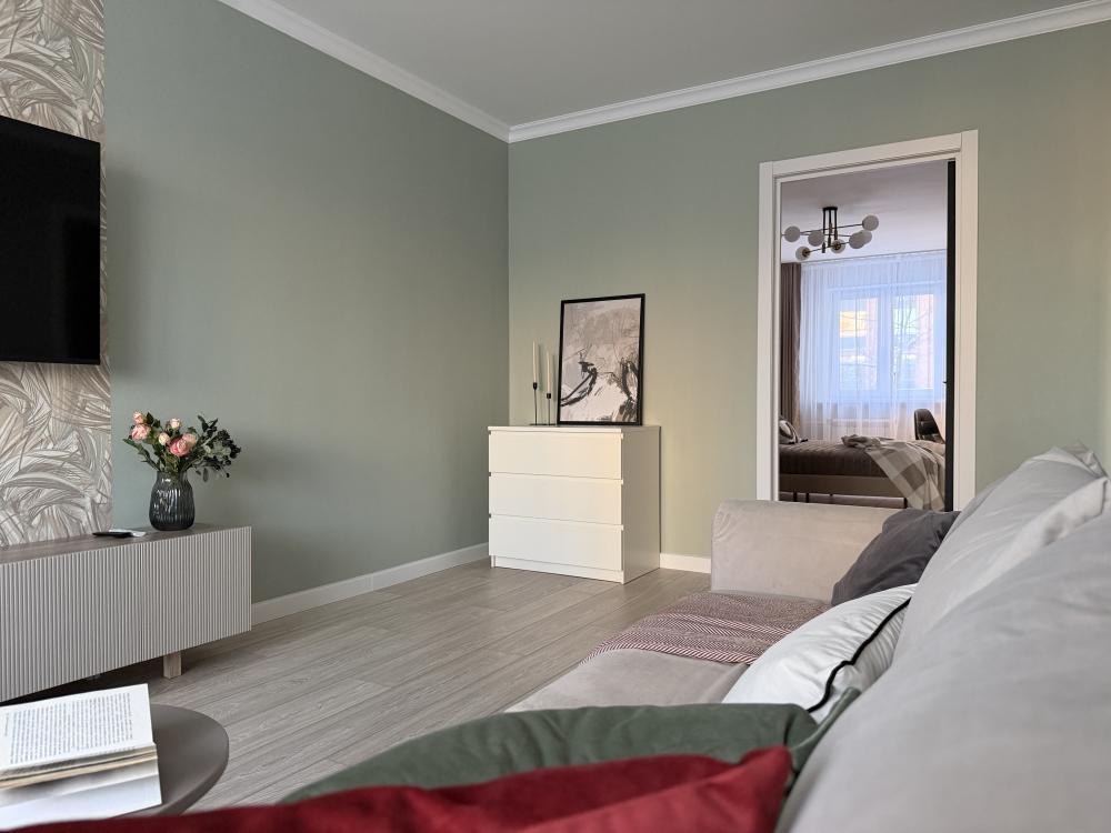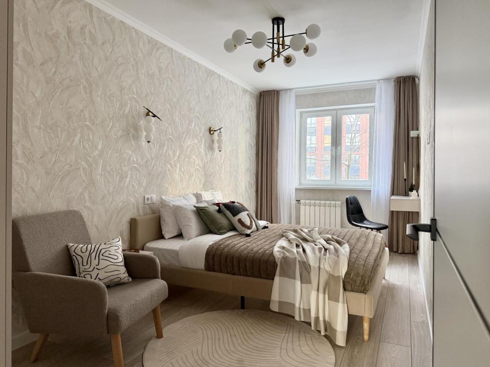 Апартаменты с одной изолированной спальней и гостиной расположены на четвертом этаже жилого дома в Чкаловском районе Екатеринбурга. Спальня, гостиная с балконом, кухня , прихожая, туалет и ванная комната. В пешем доступе станция метро "Ботаническая", ТГ "Дирижабль", аквапарк "Лимпопо", ледовая арена "Айс", Океанариум. Современный ремонт с применением качественных отделочных материалов позволяет уютно чувствовать себя каждому гостю. В наличии вся необходимая мебель и техника: - двуспальные кровать с удобным матрасом ; - большой раскладной диван в гостиной; - шкаф для одежды; - комод и стенка в гостиной; - телевизор диагональю 55 дюймов с доступом к онлайн-кинотеатрам. Полноценная кухня, оснащена техникой, утварью и посудой, а именно: - варочная поверхность и духовой шкаф; - микроволновая печь; - холодильник; - электрочайник; - бокалы под шампанское; - набор кастрюль и сковородок. Раздельный санузел оборудован ванной, раковиной, унитазом, стиральной машиной. Также для вашего удобства: - фен; - утюг ; - гладильная доска; - сушилка; - полотенца и постельное белье высокого качества. Для Вашего комфорта и развлечений всегда можно воспользоваться бесплатным WIFI и интерактивным ТВ. Кроме того, в наших апартаментах реализовано самостоятельное заселение, поэтому заселиться можно в любое удобное Вам время.