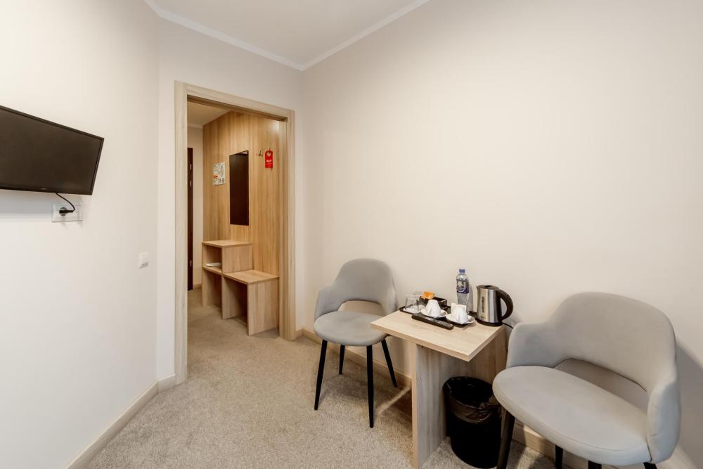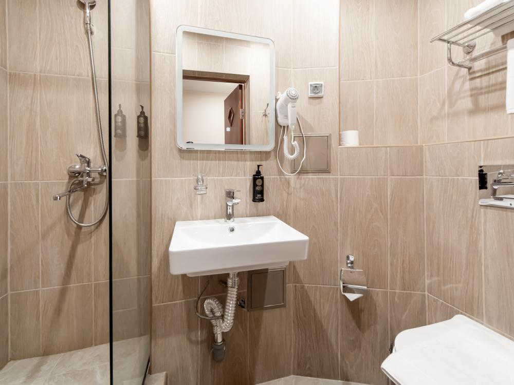 Подойдет для командировки. В номере: односпальная кровать 80*200, телевизор, мини-бар, шкаф, стол, стул/полукресло, чайные принадлежности, wi-fi. В санузле: душевая кабина, набор полотенец, фен.