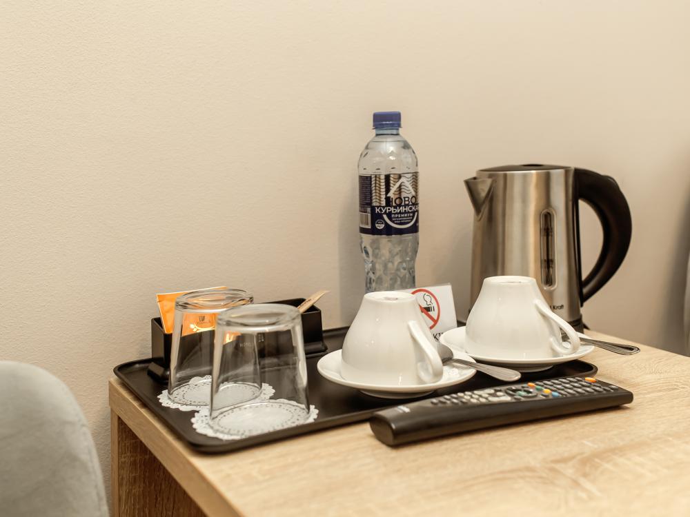 Идеально для отчетных документов. В номере: двуспальная 160*200 или две односпальные кровати 80*200, прикроватные тумбочки, стол, телевизор, чайный набор, шкаф, мини-бар, wi-fi. В санузле: – ванна/душевая кабина, набор полотенец, фен.