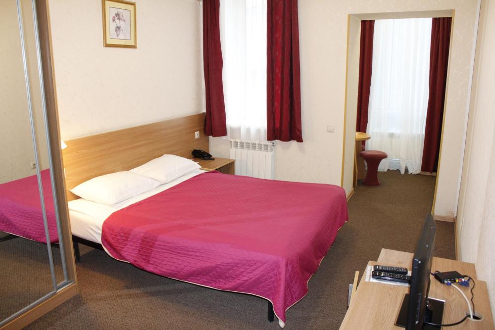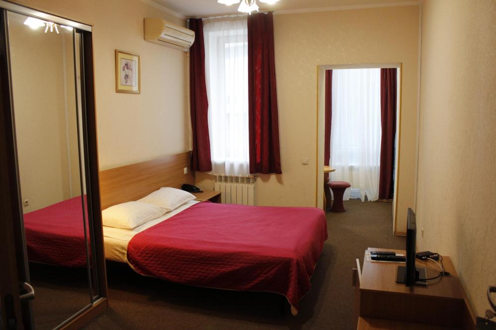 В номере: 1,5-спальная кровать, телефон с выходом на междугороднюю и международную связь, телевизор, мини-бар, сейф, шкаф-купе, бесплатный Wi-Fi, душ (либо ванна)
