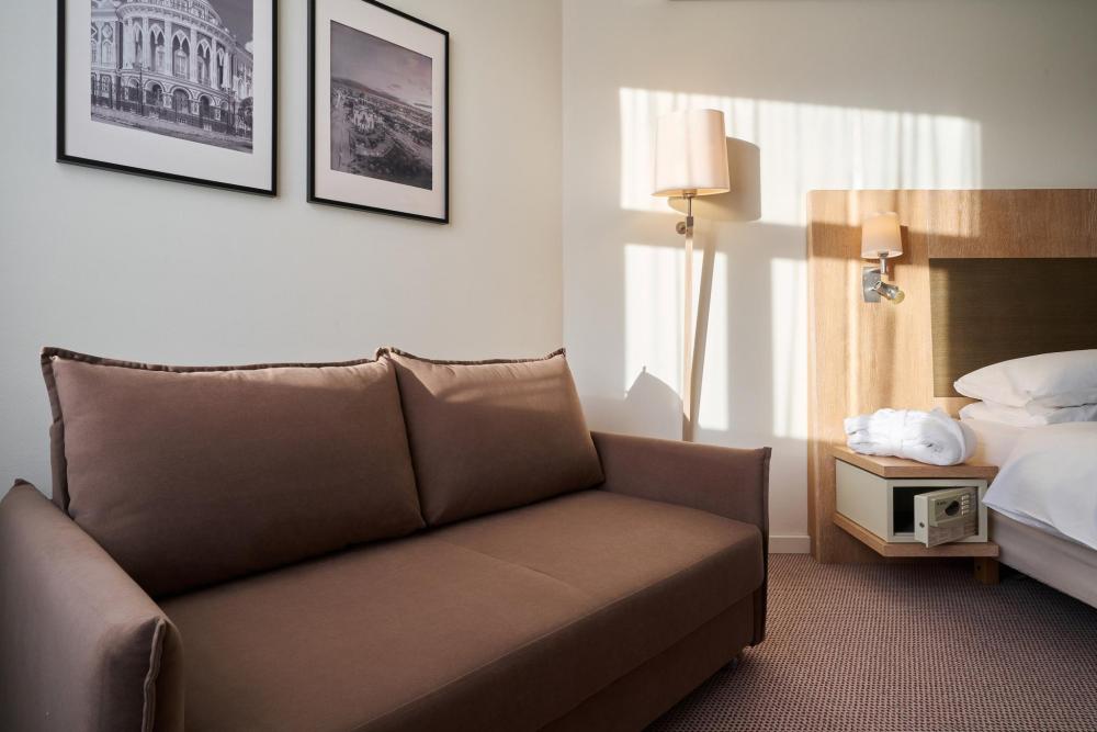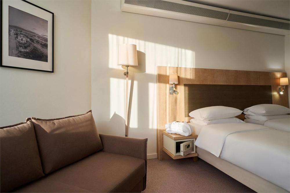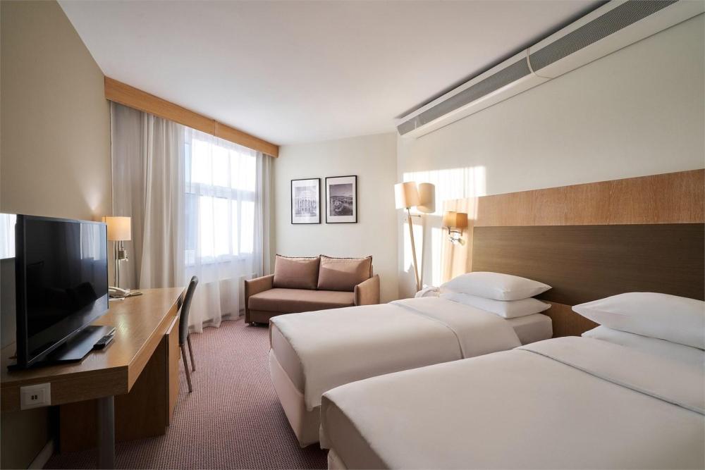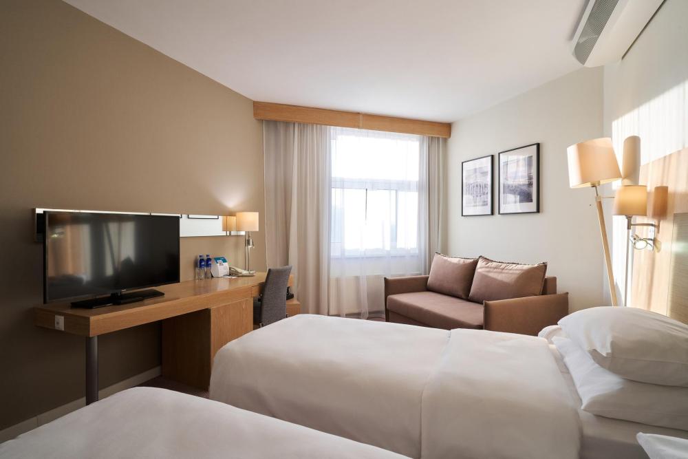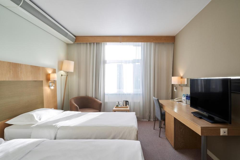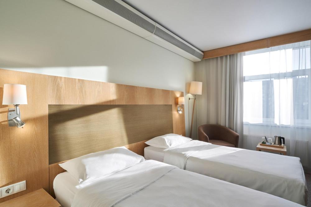 В номере: две раздельные кровати, два кресла, рабочий и журнальный столы, стул, шкаф для одежды, индивидуальный сейф, спутниковое ТВ, телефон, бесплатный беспроводной Интернет, центральная система кондиционирования воздуха. Санузел совмещен с душевой кабиной и оборудован сантехникой импортного производства.