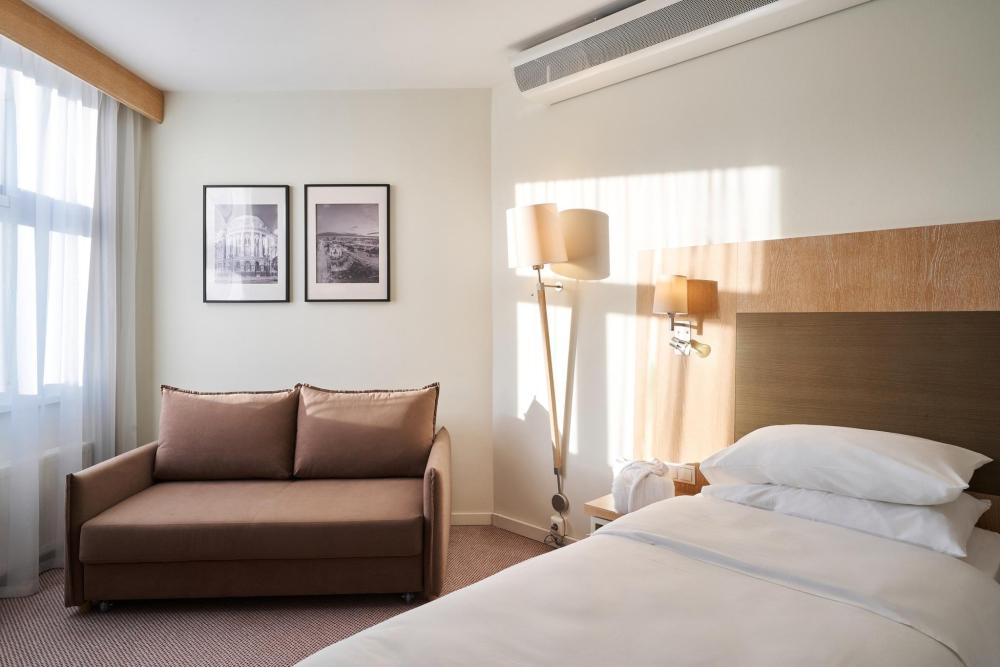 Выберите категорию номера Супериор на высоком этаже и получите дополнительное пространство и такие удобства, как приветственный комплимент, кофемашина, гладильная доска и утюг, а также услуга вечерний сервис. Выберите номер с одной кроватью королевского размера и принадлежностями для приготовления чая и кофе, благодаря которым вы сможете наслаждаться любимым напитком, не выходя из номера.