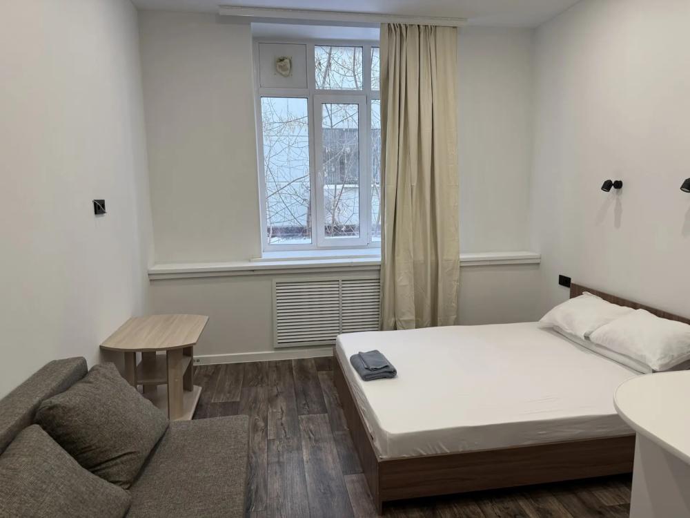 Апартаменты рассчитанные на размещение от 2 до 4 человек.Дополнительные места за доп плату В номере: двуспальная кровать, диван, кухонная зона, сан узел, шкаф.