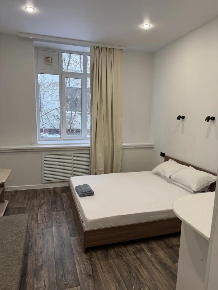 Номер с двуспальной кроватью 12 кв.м. Для гостей есть место для хранения вещей,удобства общие.