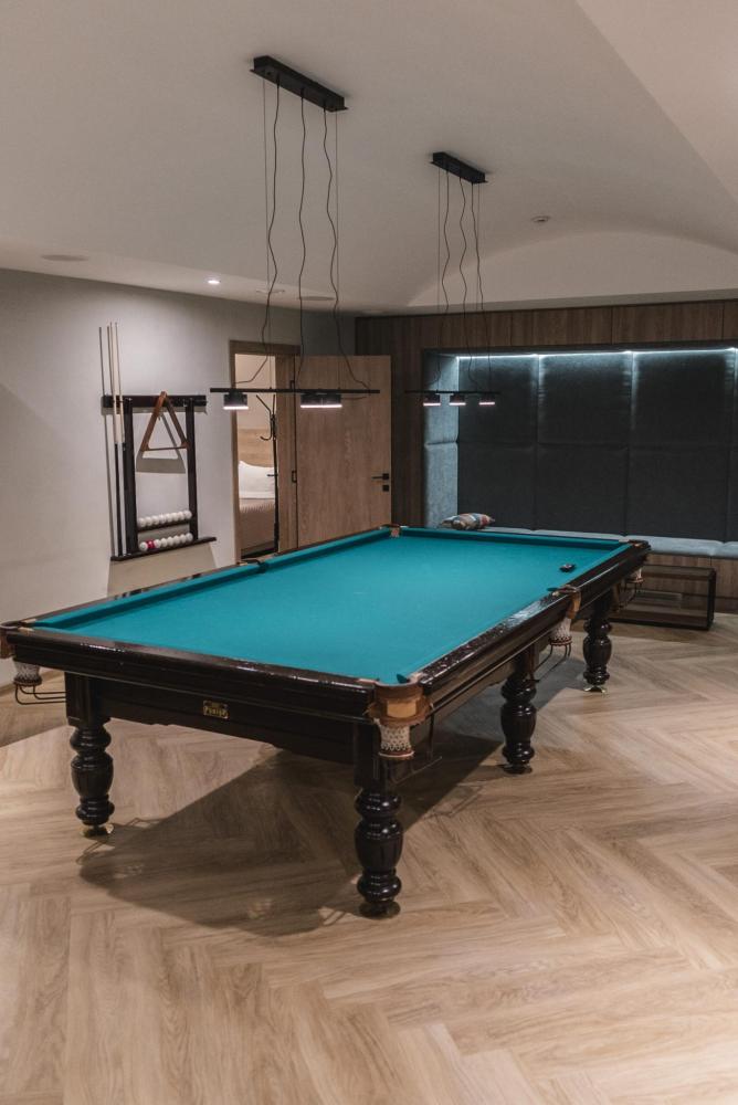 Двухэтажный дом класса Люкс № 3 вместимостью до 35 человек. На первом этаже бассейн размером 3,5 * 3 м., Турецкая Сауна «Хамам», просторный банкетный зал, фарфоровая посуда на 35 персон, индукционная плита, микроволновая печь, чайник. На втором этаже – 5 комнат, 14 спальных мест, бильярд «Русский». В распоряжении гостей большой телевизор и профессиональная аудиосистема с караоке. В случае необходимости дополнительных спальных мест, предоставляются раскладушки.