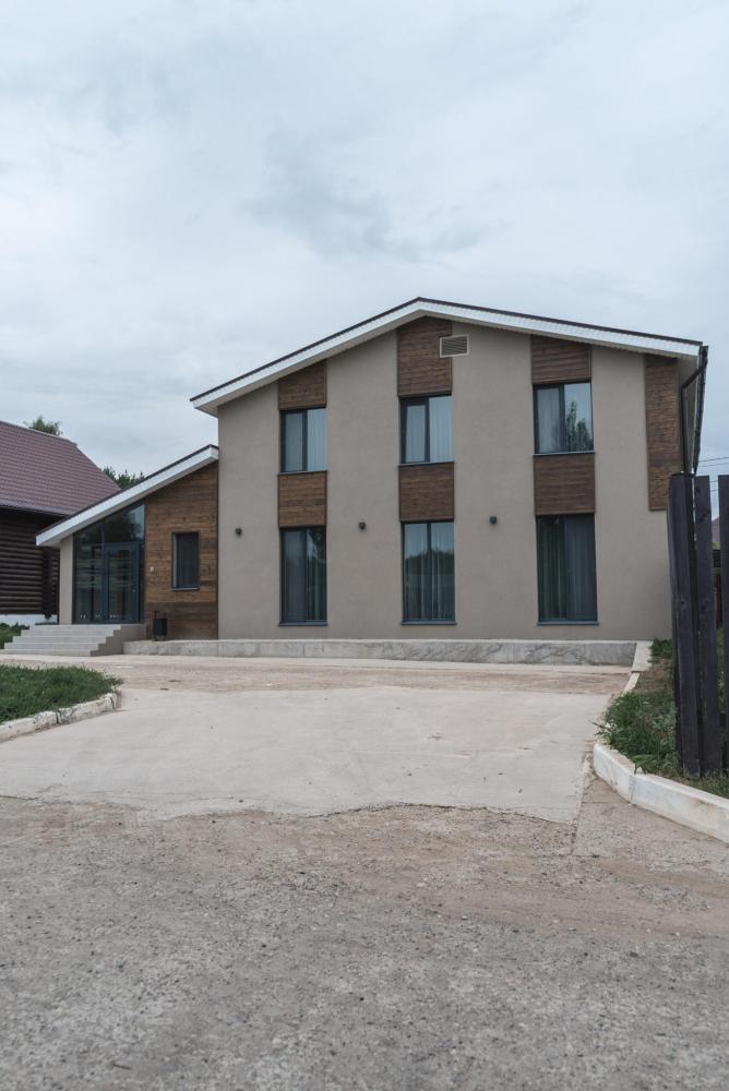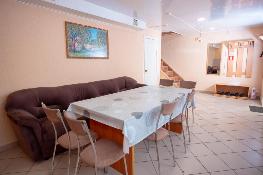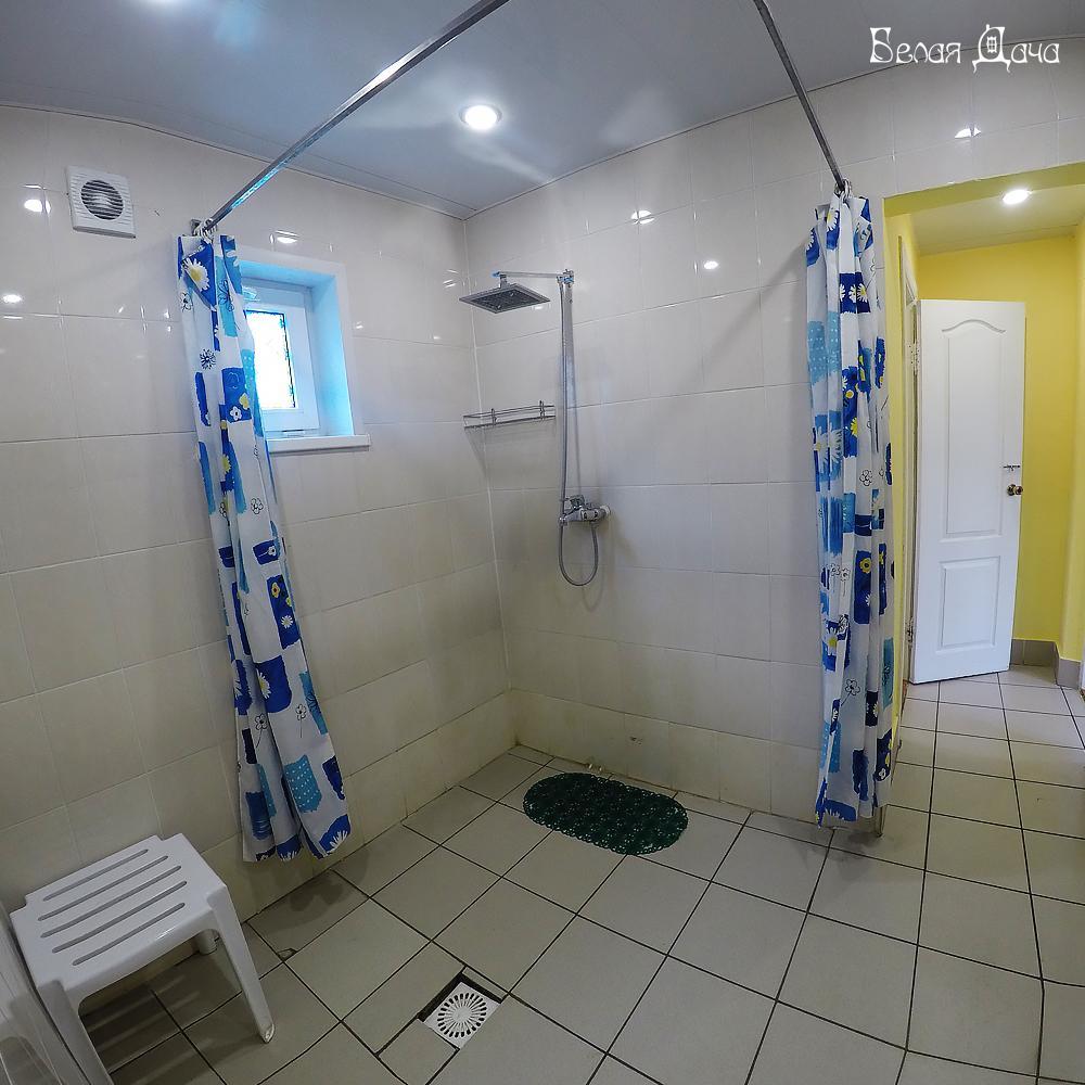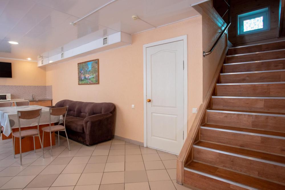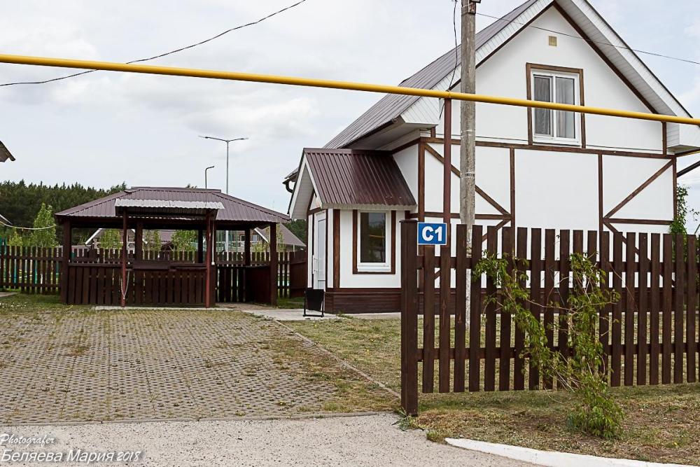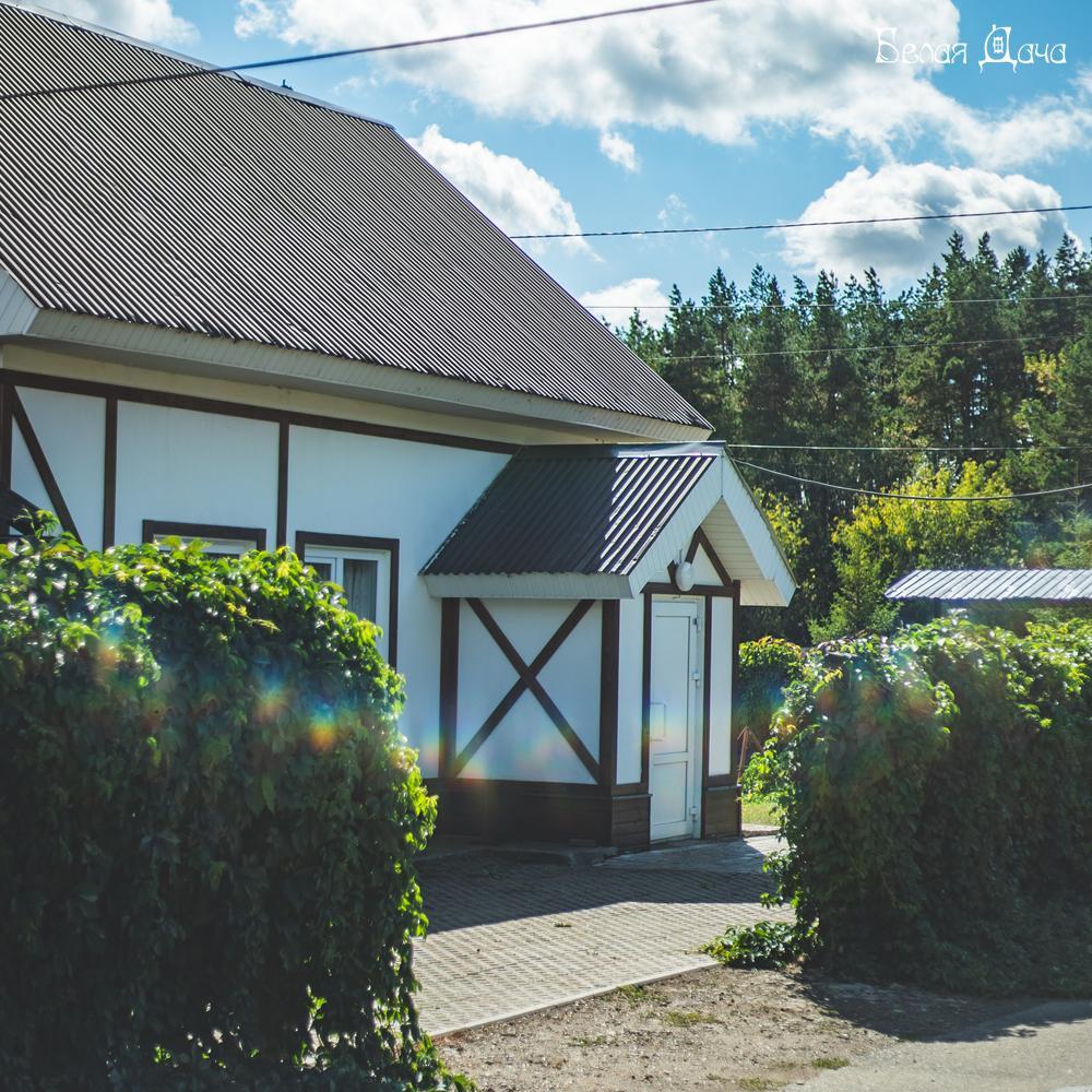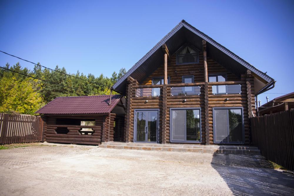 Трехэтажный дом класса Люкс № 2 и вместимостью до 30 посадочных мест. На первом этаже бассейн размером 3*3 м. «Финская» сауна, просторный банкетный зал, фарфоровая посуда на 30 персон, электрическая плита, микроволновая печь, чайник, холодильник, телевизор. На втором этаже четыре комнаты в каждой по одной двуспальной кровати, на третьем этаже есть 4 мягких пуфа, бильярд «Американка». Во дворе – беседка с мангалом.