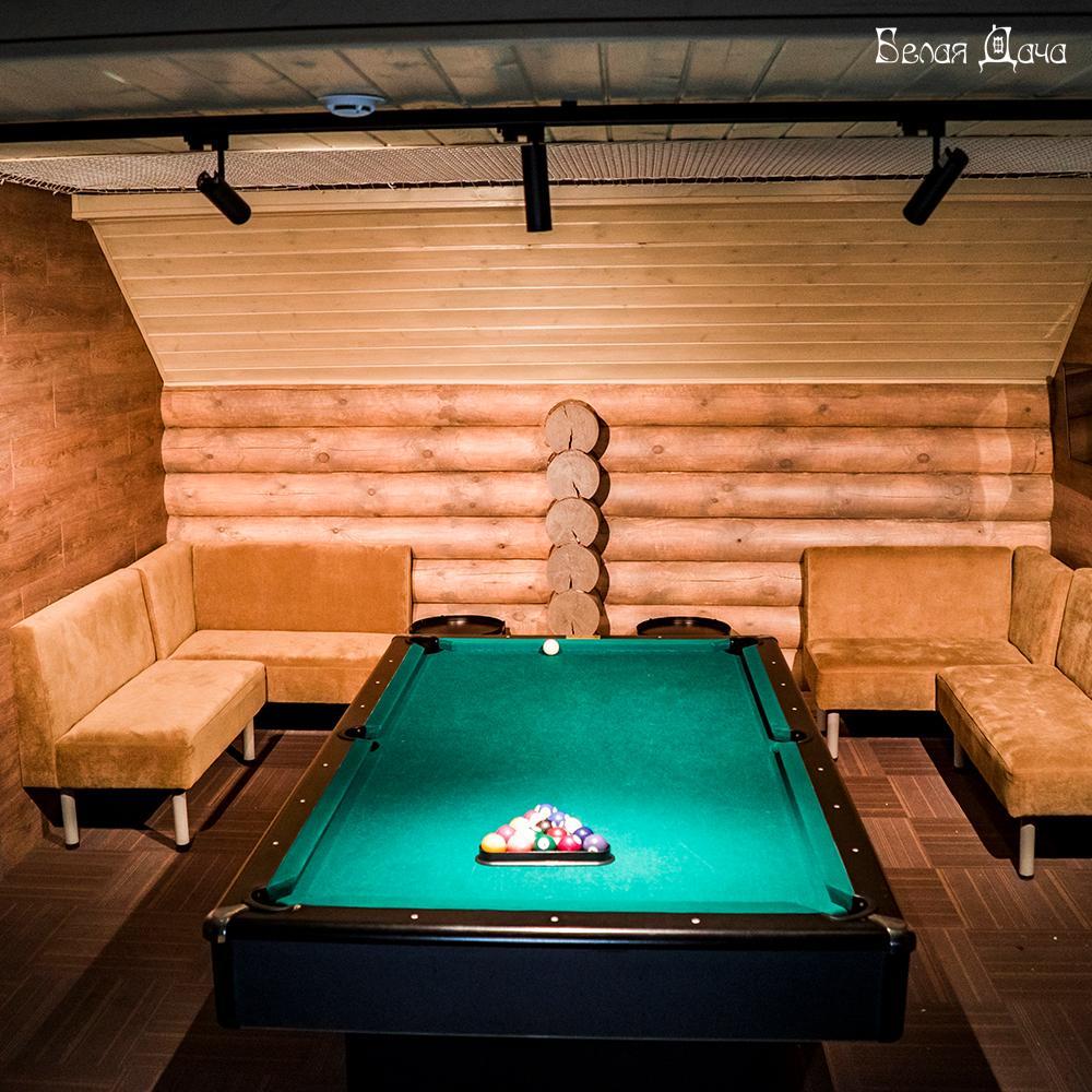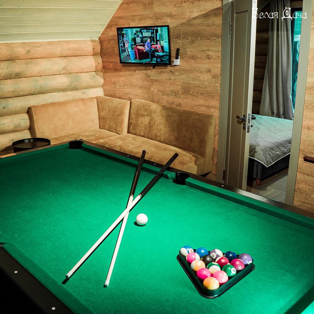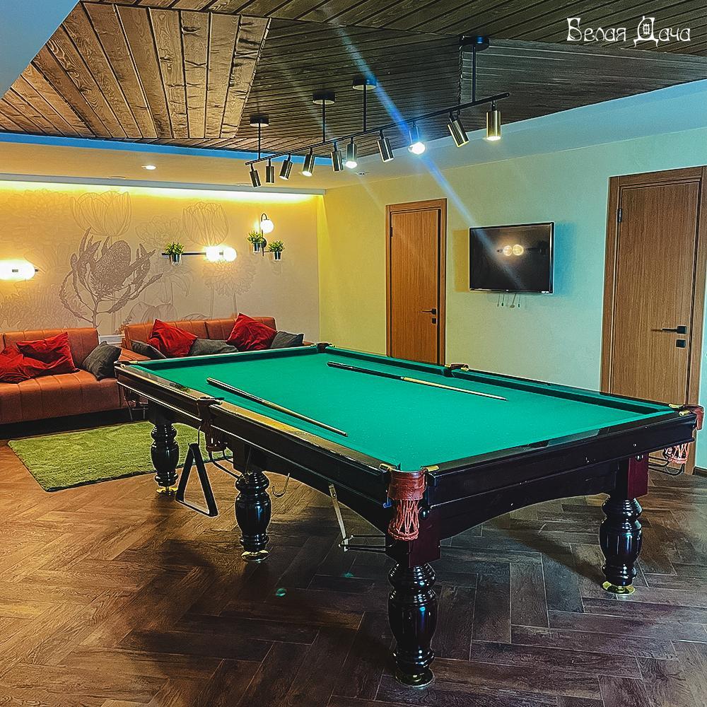 Двухэтажный дом класса Люкс №4 вместимостью до 35 человек. На первом этаже бассейн размером 3,5 * 3 м., Сауна «Финская», просторный банкетный зал, фарфоровая посуда на 35 персон, индукционная плита, микроволновая печь, чайник. На втором этаже 5 комнат, 14 спальных мест, бильярд «Русский». В распоряжении гостей большой телевизор и профессиональная аудиосистема с караоке. В случае необходимости дополнительных спальных мест, предоставляются раскладушки.