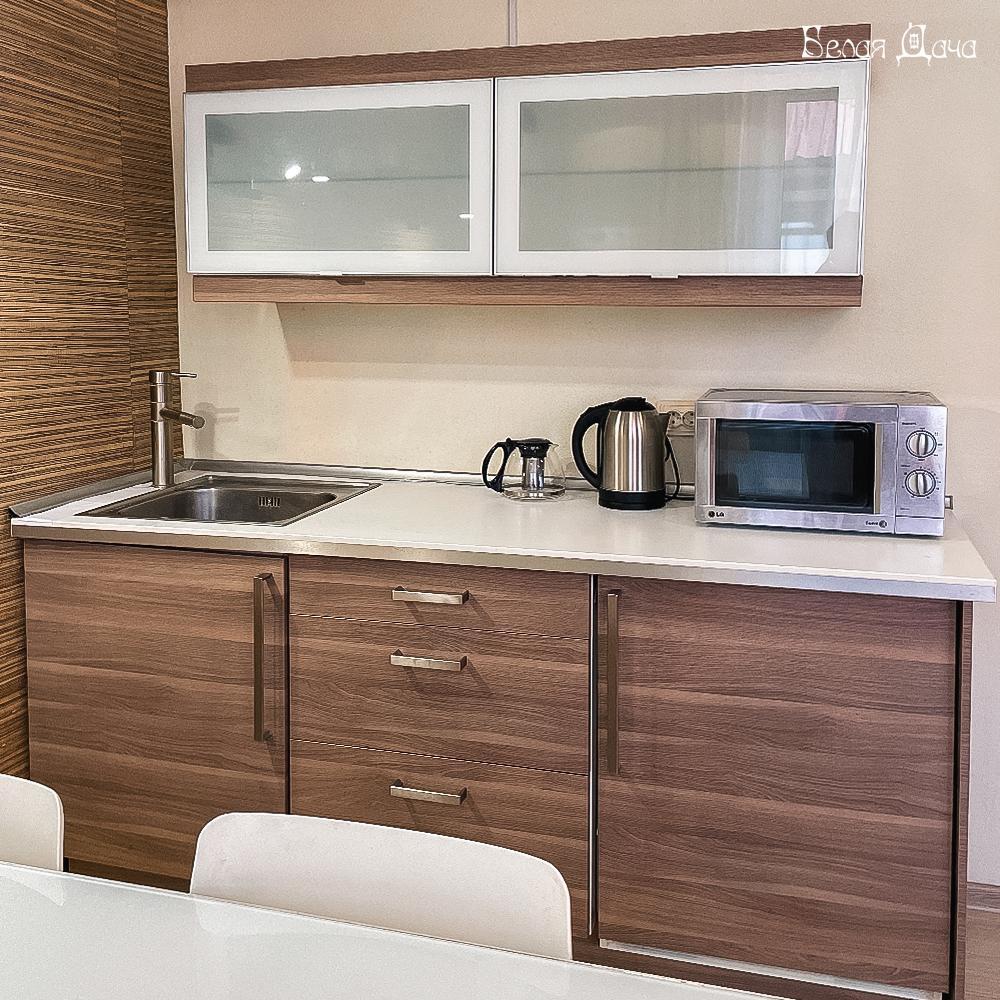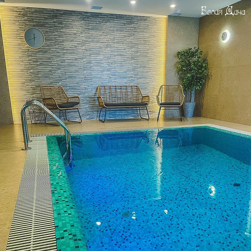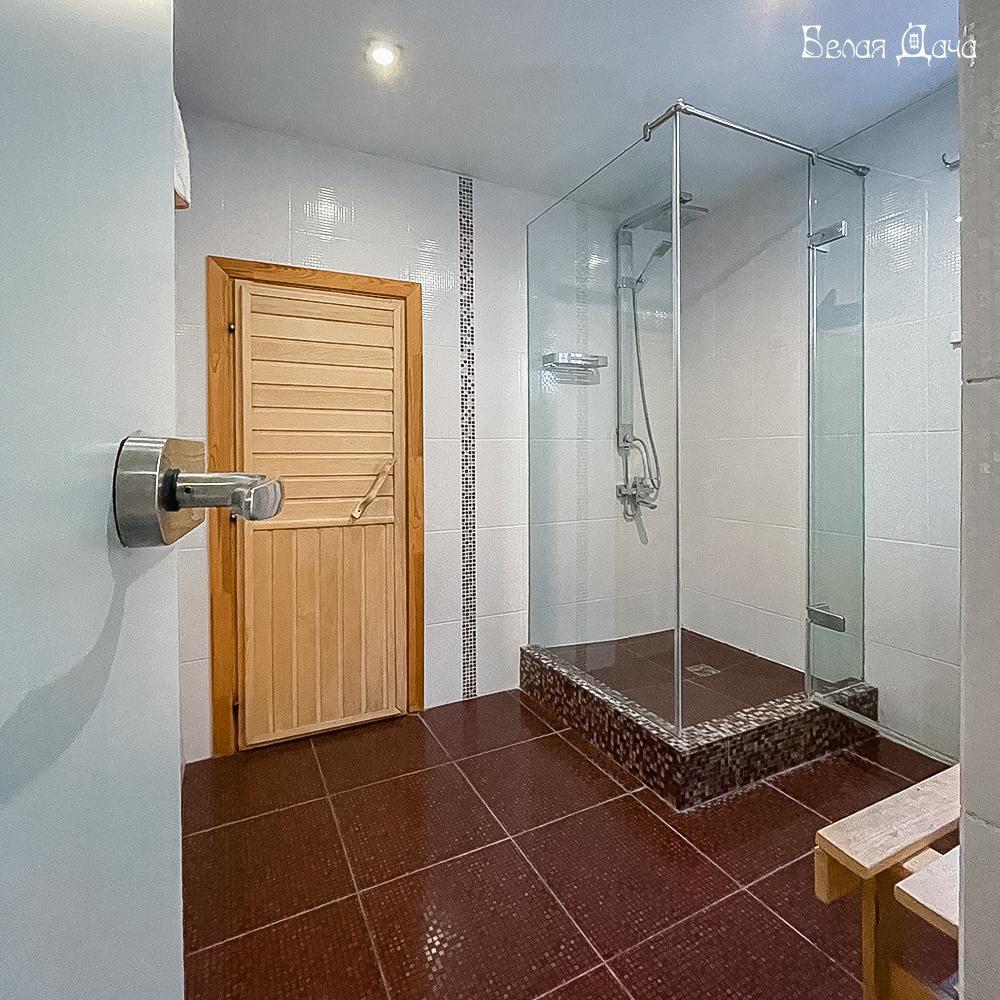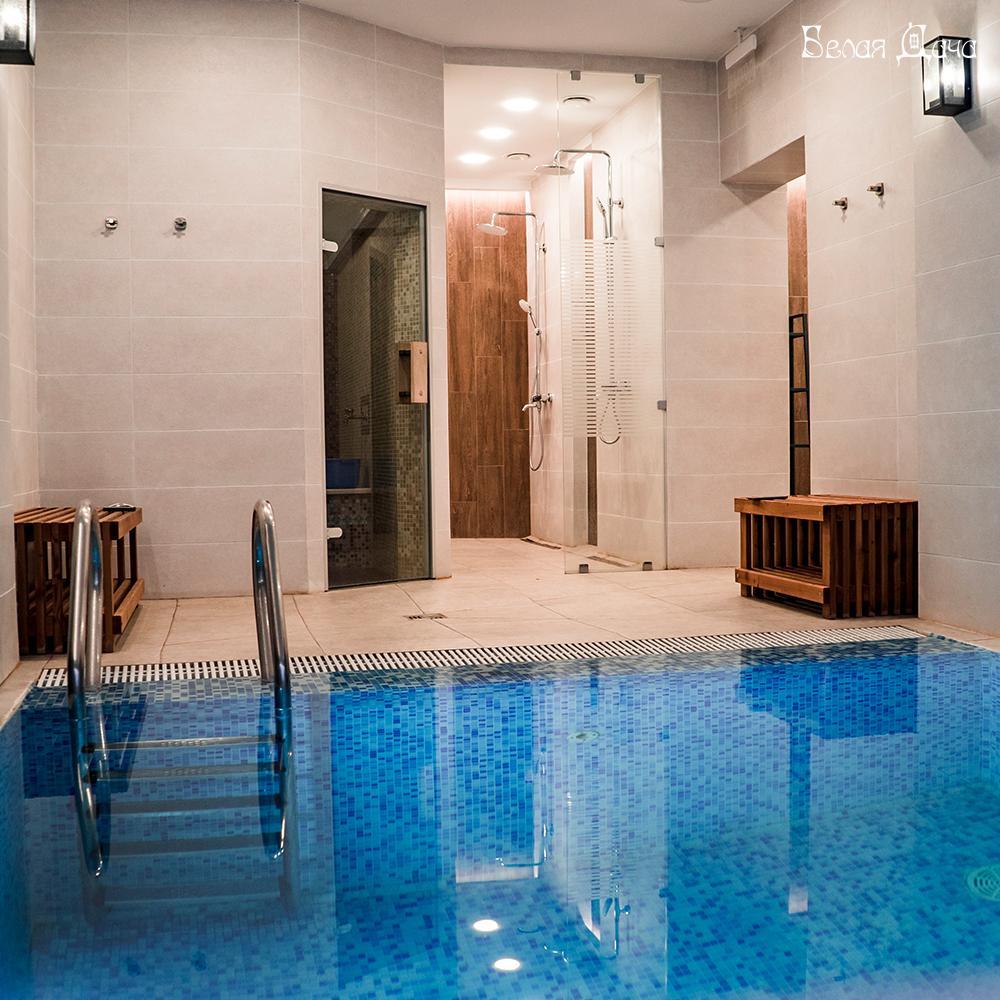 Двухэтажный дом класса Люкс №4 вместимостью до 35 человек. На первом этаже бассейн размером 3,5 * 3 м., Сауна «Финская», просторный банкетный зал, фарфоровая посуда на 35 персон, индукционная плита, микроволновая печь, чайник. На втором этаже 5 комнат, 14 спальных мест, бильярд «Русский». В распоряжении гостей большой телевизор и профессиональная аудиосистема с караоке. В случае необходимости дополнительных спальных мест, предоставляются раскладушки.