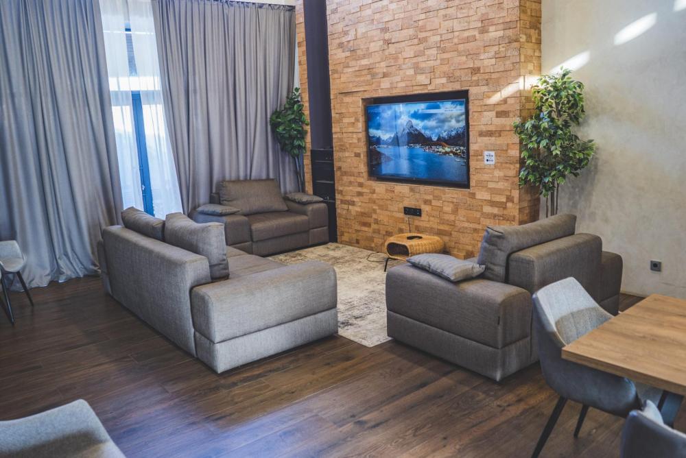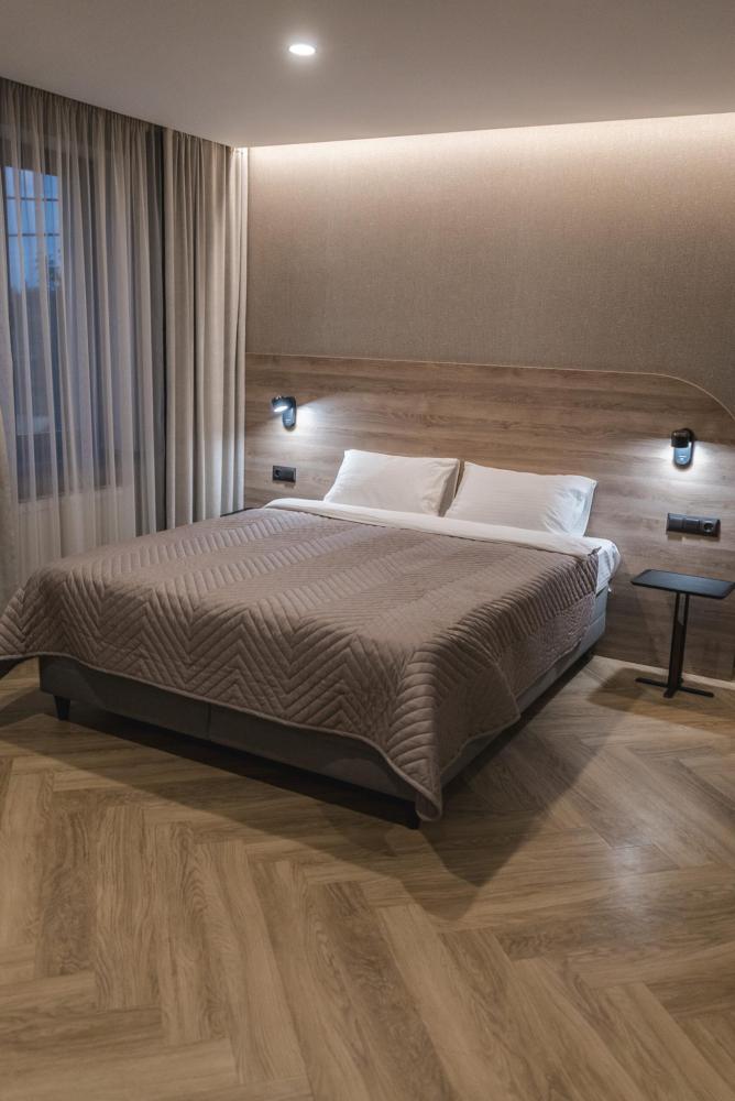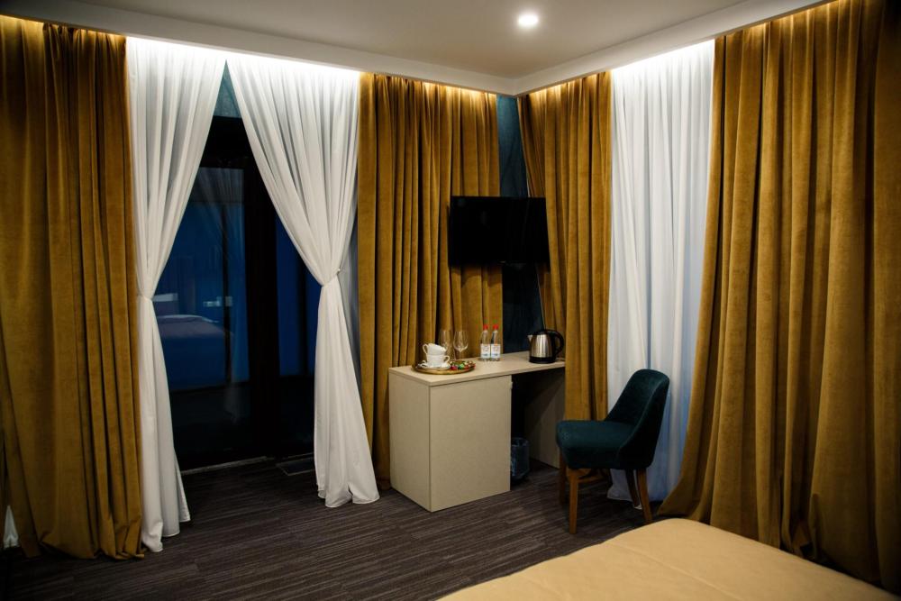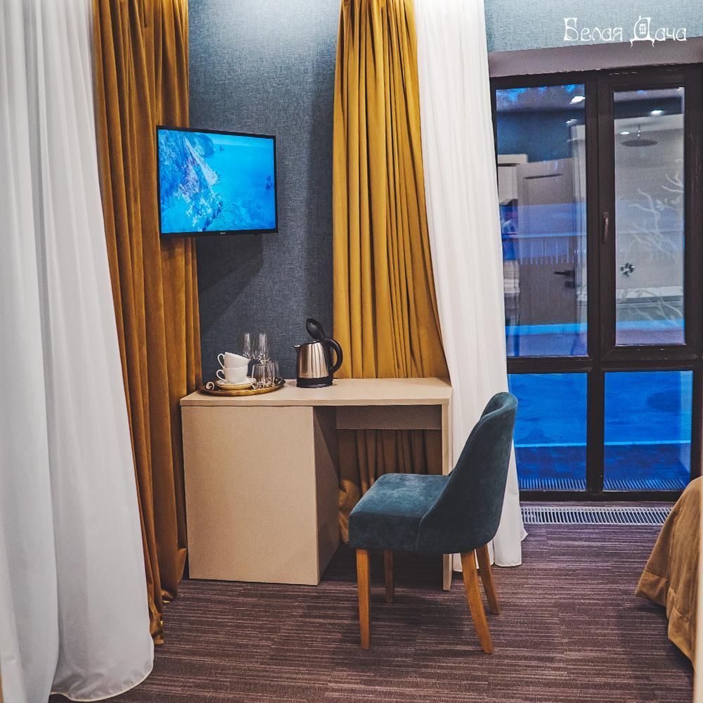 В номерах есть двухспальные кровати, телевизоры, Wi-Fi, ванная с туалетом, шкаф для вещей, сейф.