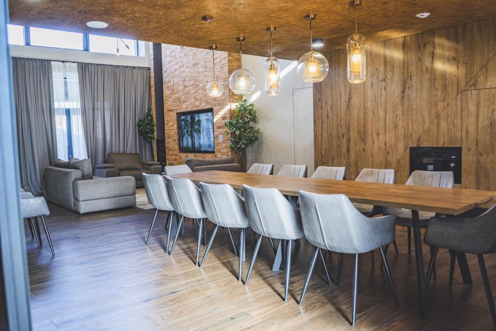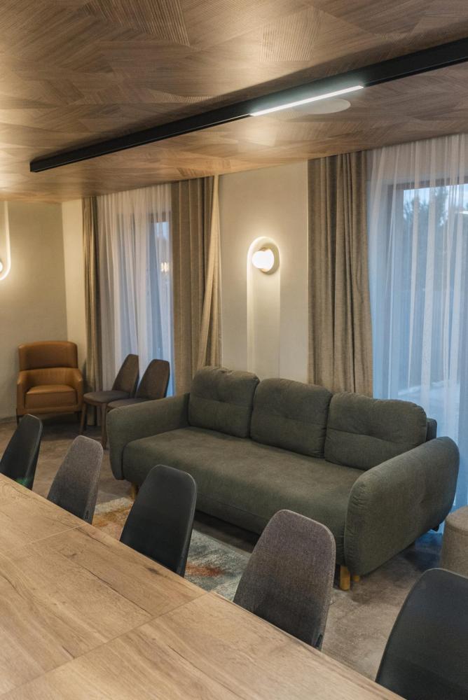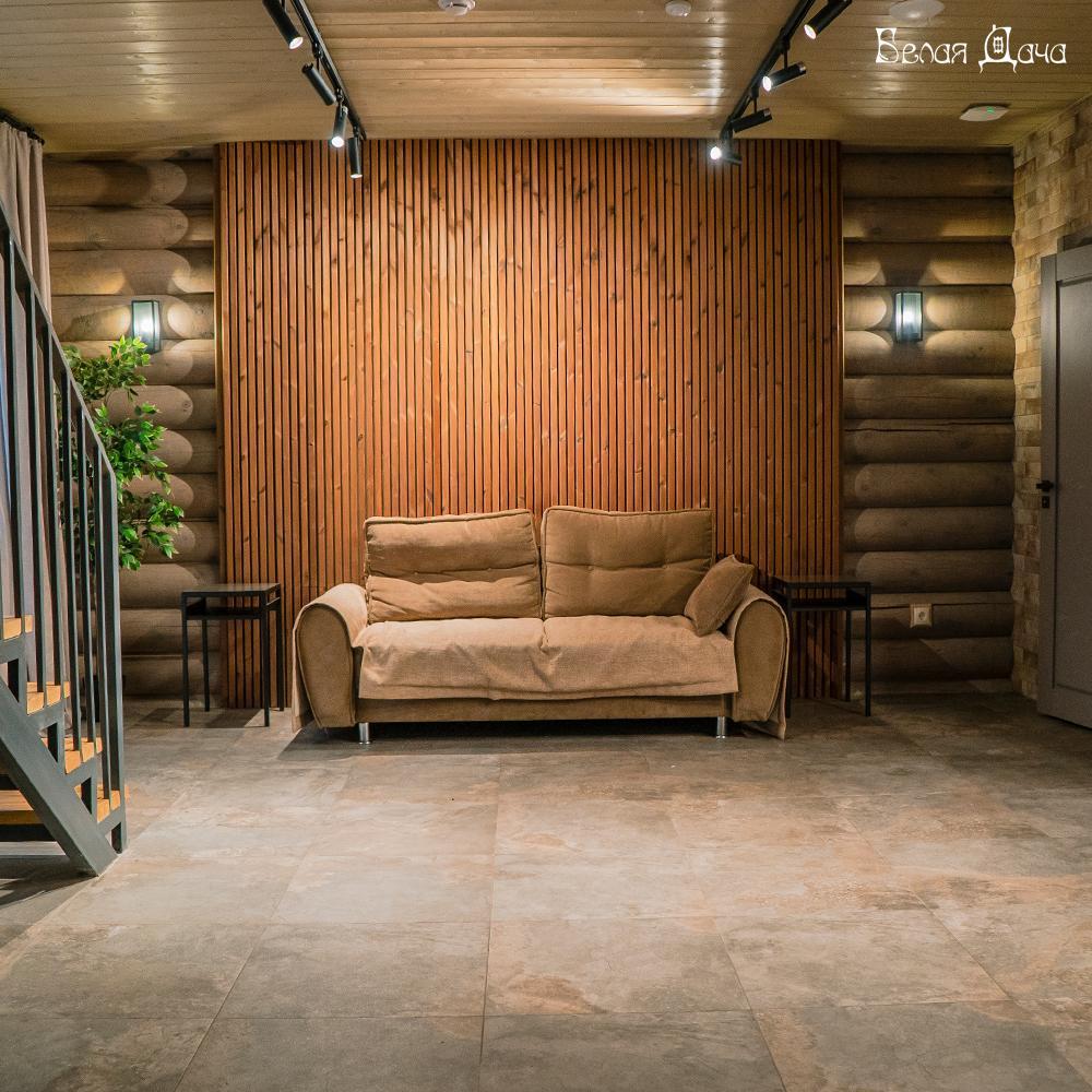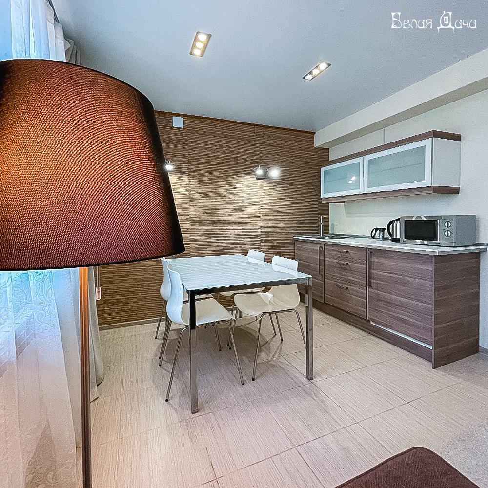 Комфортный дом с залом, вместимостью до 16 посадочных мест, с двумя спальнями. В доме есть микроволновая печь, варочная панель, фарфоровая посуда на 16 персон, современная медиасистема, Bluetooth, Wi-Fi, просторная SPA-зона, бассейн 2,5×4,5 м., сауна «Хамам». Количество спальных мест с учетом дополнительных мест: 6. Во дворе – беседка, мангал.