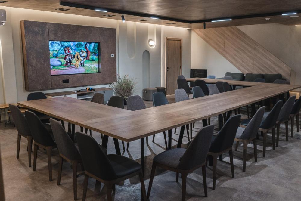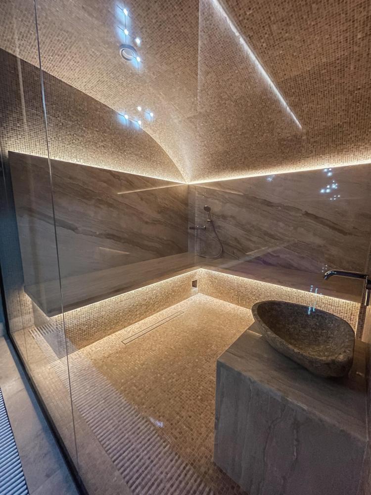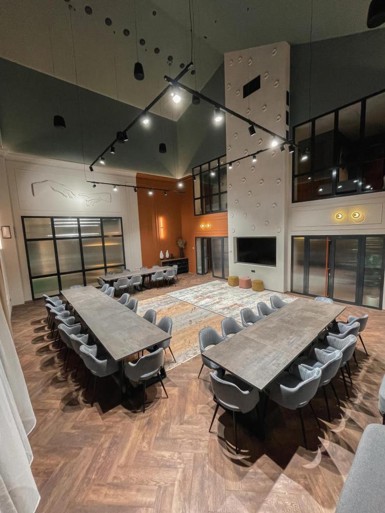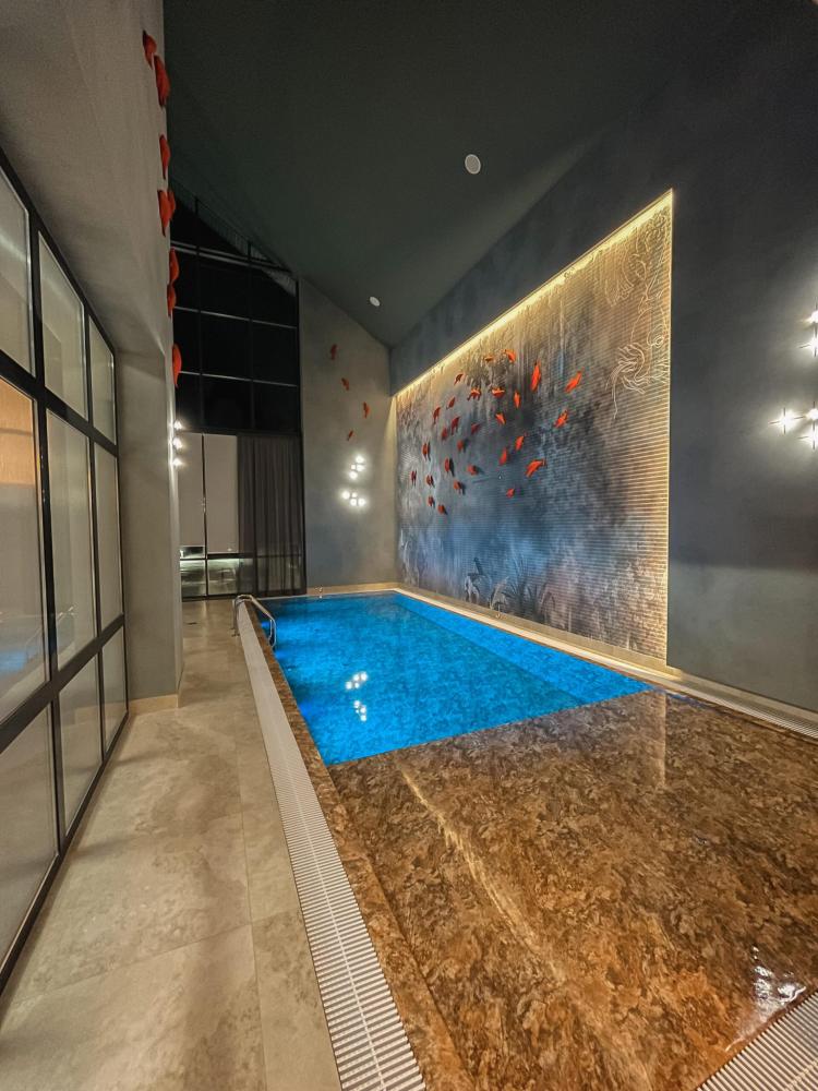 Трёхэтажный этажный дом вместимостью до 50 человек. Внутри – большой банкетный зал, 6 комнат, 22 спальных места. В доме есть СПА-зона: 8-метровый бассейн с гидромассажем и водопадом, хамам, тропический душ. Также в доме есть мастер-спальня для виновника торжества, спальни со «вторым светом» и высокими потолками, профессиональная кухня с пароконвектоматом. В распоряжении гостей огромный телевизор 85’, качественный звук на 1, 2 этаже и в бассейне, профессиональная аудиосистема с караоке, Wi-Fi, две лаундж зоны и большая мангальная зона на заднем дворе.