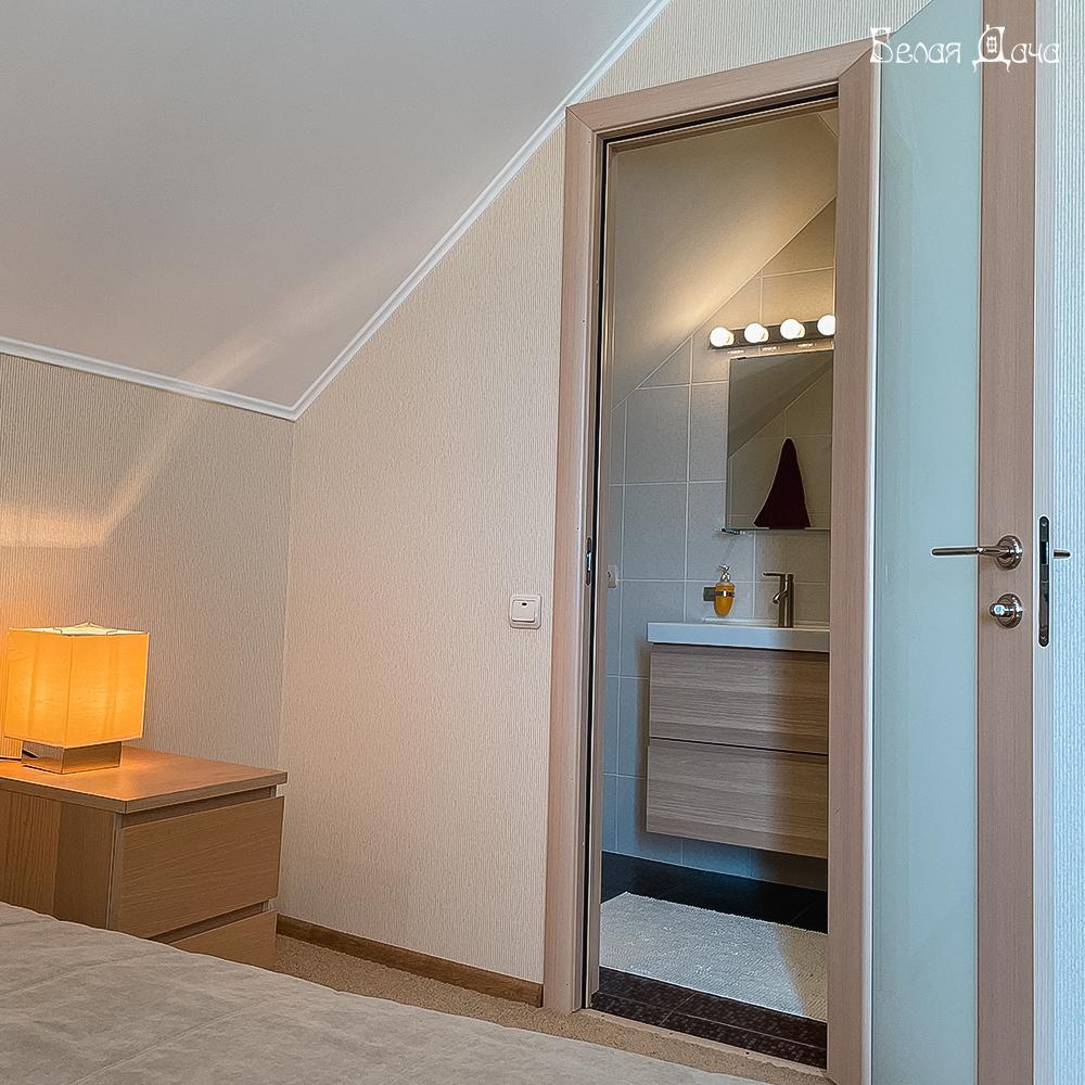 На 1 этаже расположены гостиная, посуда на 6 человек, ТV, холодильник, микроволновая печь, чайник. На 2 этаже – две изолированные спальни с отдельными санузлами. В случае необходимости дополнительных спальных мест, предоставляются раскладушки. На участке возле дома находятся: летняя веранда и мангал.