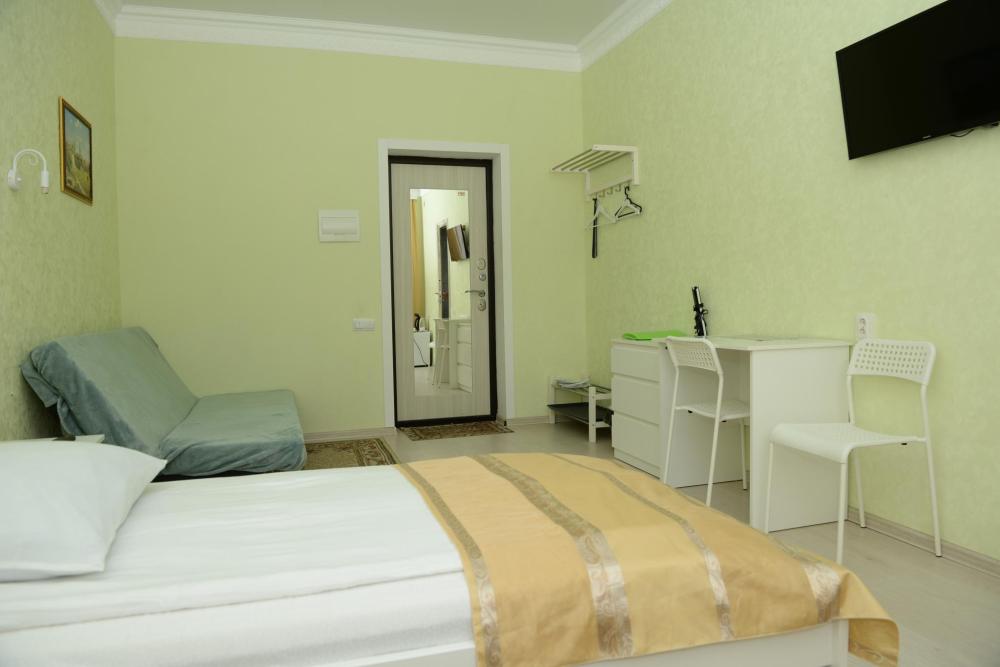 В номере: -шкаф-купе с большим зеркалом -2 односпальные кровати -прикроватные тумбочки -стол -холодильник -вентилятор -ж/к ТВ -бесплатный Wi-Fi -санузел и душ в номере