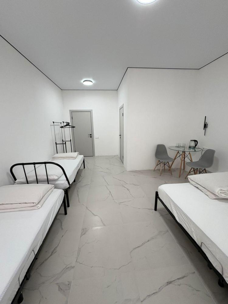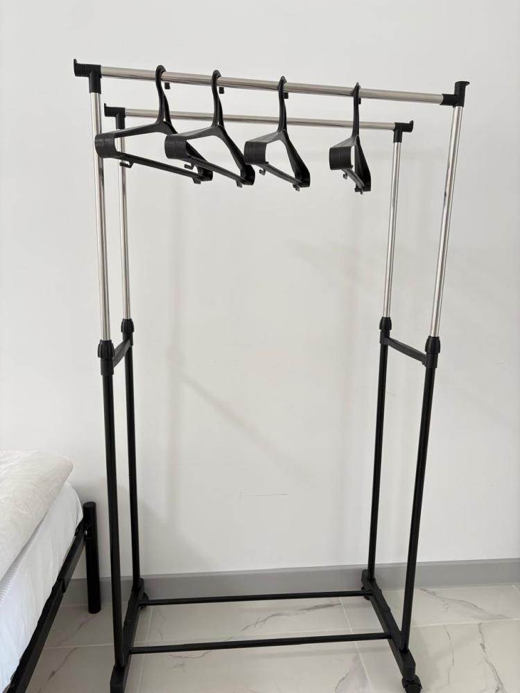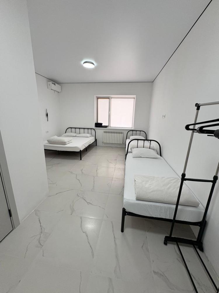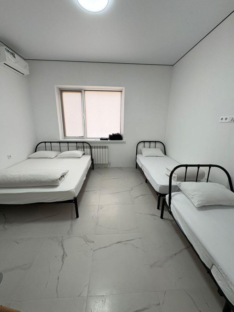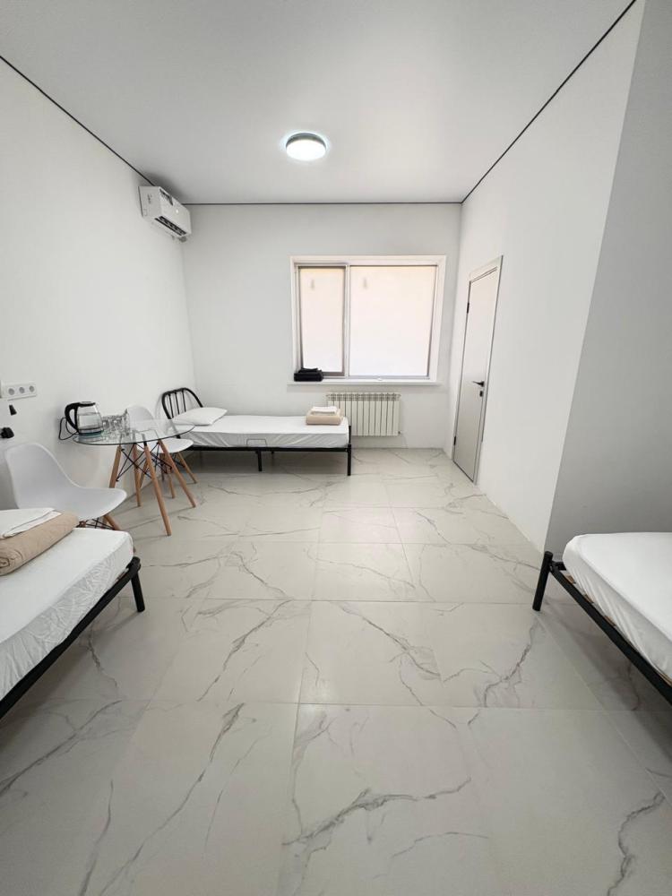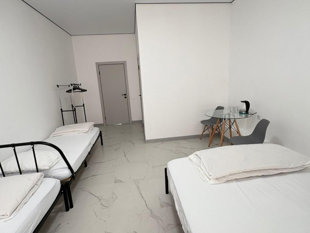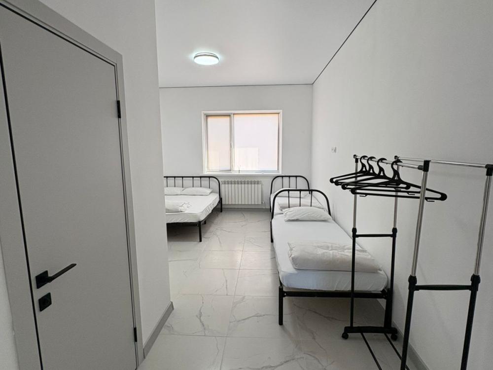 Двуспальная кровать и две односпальные кровати. Вешалка для одежды, кондиционер. Микроволновая печь, холодильник. Ванная комната с душем. Предоставляется постельное белье и полотенца. Питьевая вода в кулере на этаже.