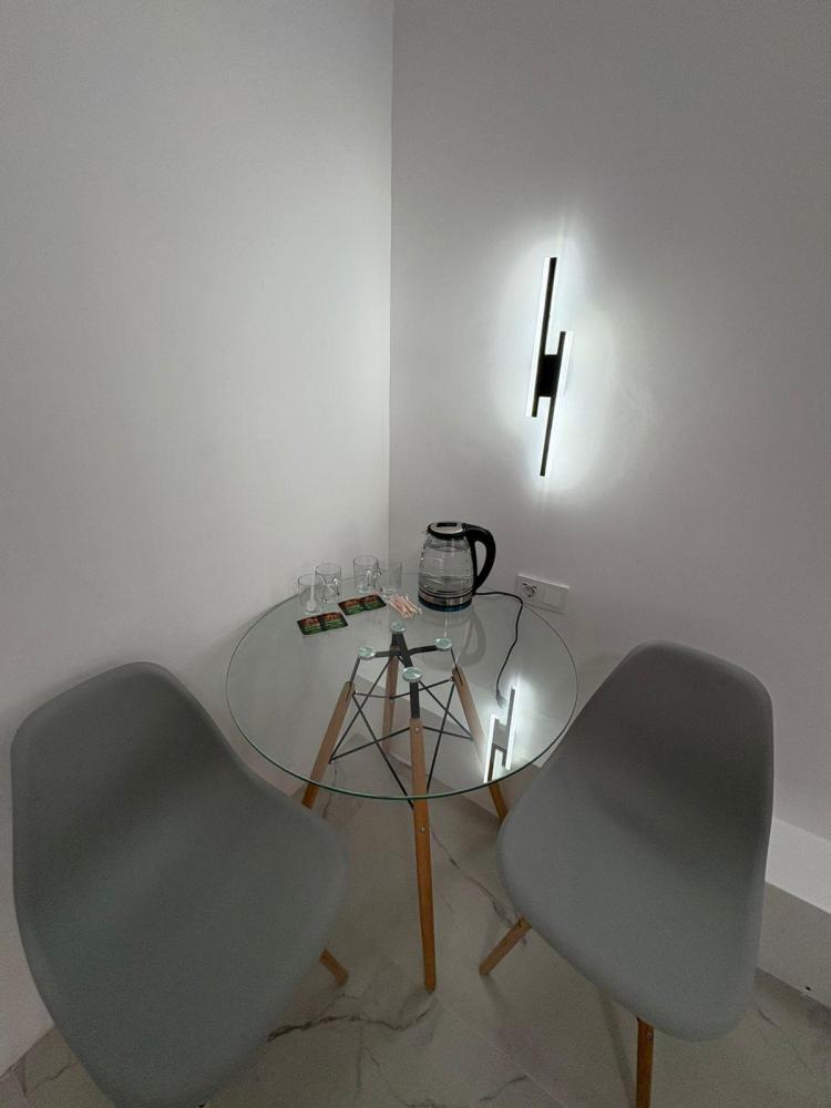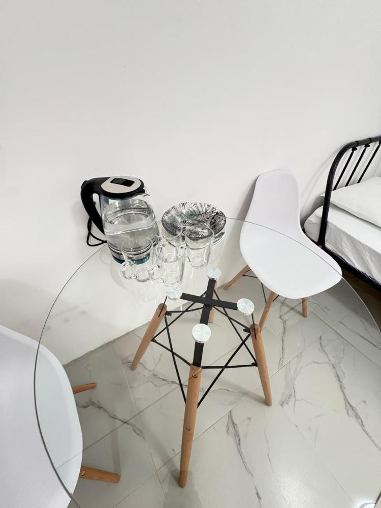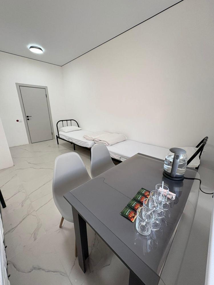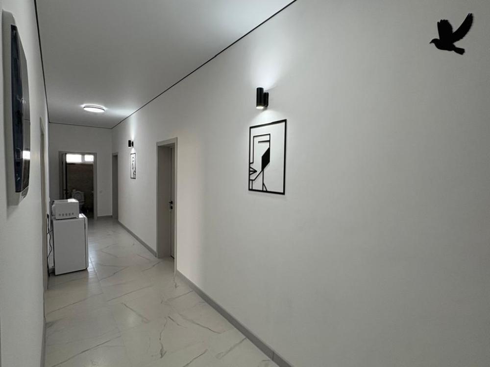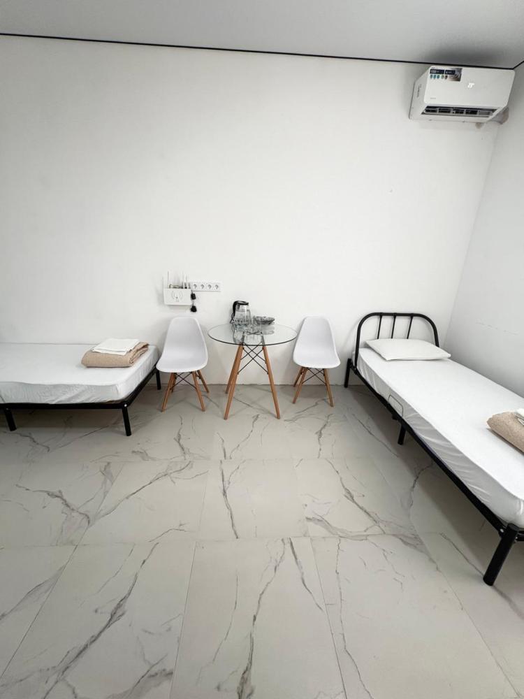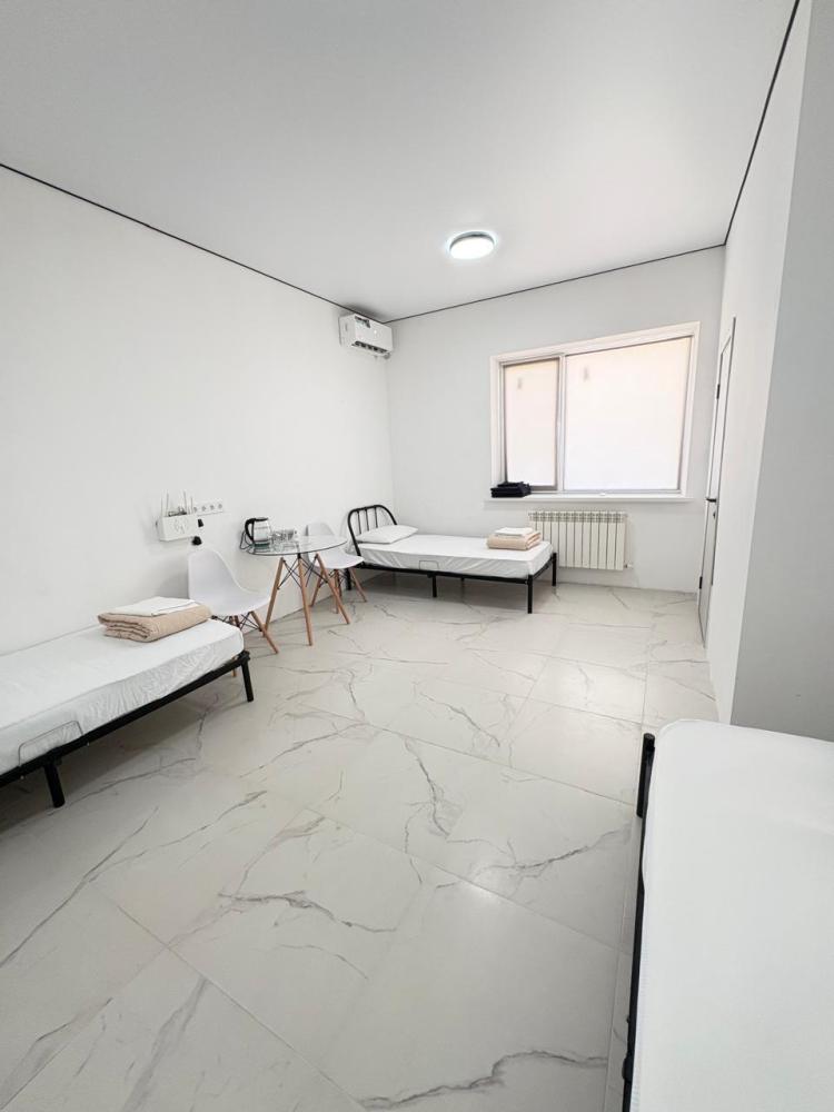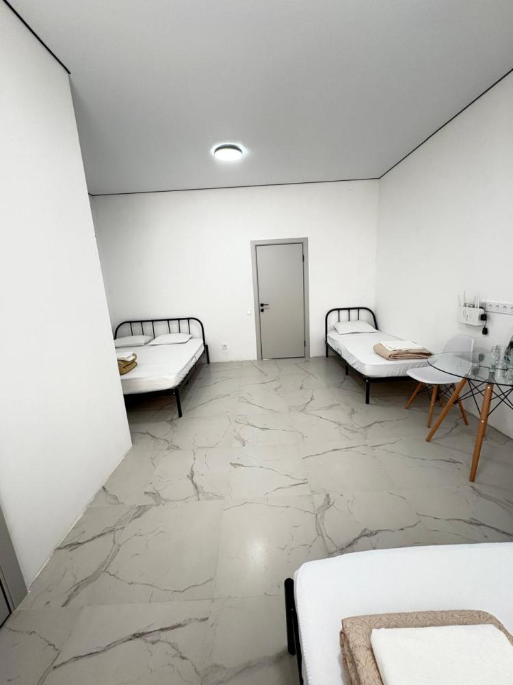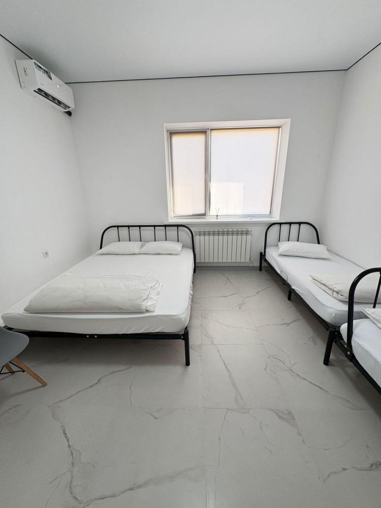 Двуспальная кровать и две односпальные кровати. Вешалка для одежды, кондиционер. Микроволновая печь, холодильник. Ванная комната с душем. Предоставляется постельное белье и полотенца. Питьевая вода в кулере на этаже.
