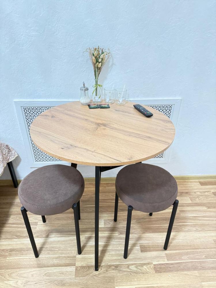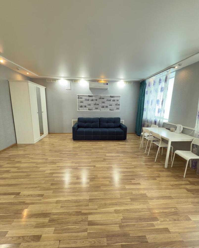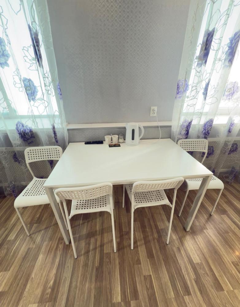 Площадь номера 45 кв. м. В номере имеется: двухспальная кровать, диван кровать двухместный, сплит-система, телевизор с плоским экраном, обеденный стол с тремя стульями, чайник, кружки, чай, сахар, прикроватная тумба, противомоскитная сетка, шкаф для хранения белья В ванной комнате: душ, банные полотенца, фен, гигиенические средства К услугам гостей: бесплатный WI-FI, обслуживание номеров, отопление. На этаже: Холодильник, кулер, микроволновая печь