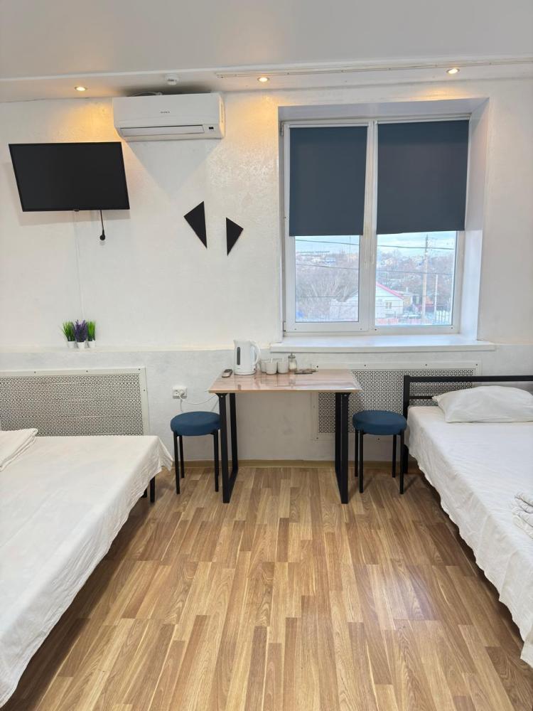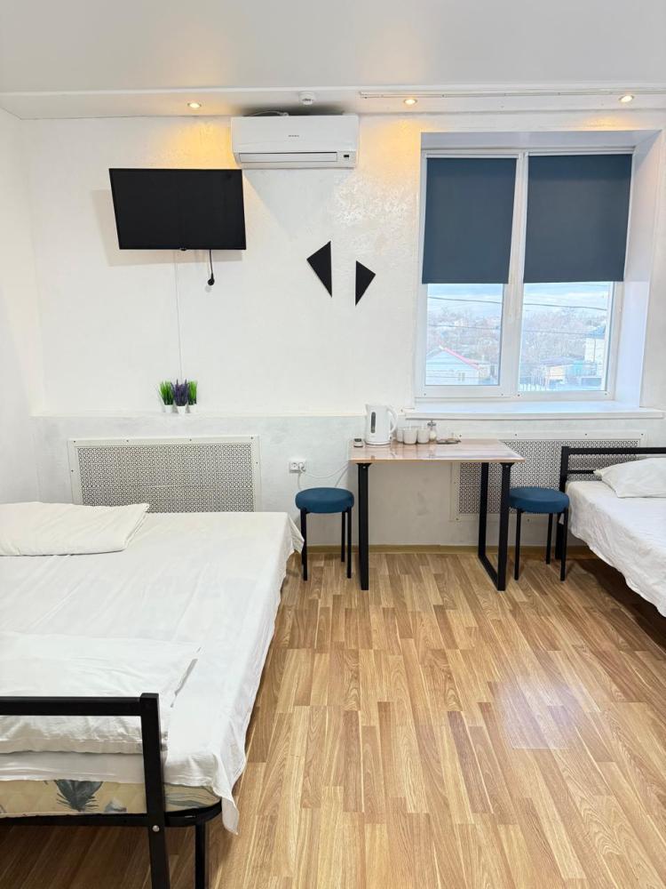 Двухкомнатный номер, площадь номера 45 кв. м. В номере: пять полутороспальные кровати, сплит-система, отопление, противомоскитная сетка, телевизор с плоским экраном Обеденный стол с тремя стульями, чайник, кружки, чай, сахар. В ванной комнате: банные полотенца, фен, гигиенические средства, душ. К услугам гостей: бесплатный WI-FI, обслуживание номеров, номера для не курящих На этаже: холодильник, кулер, микроволновая печь.