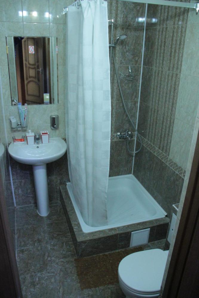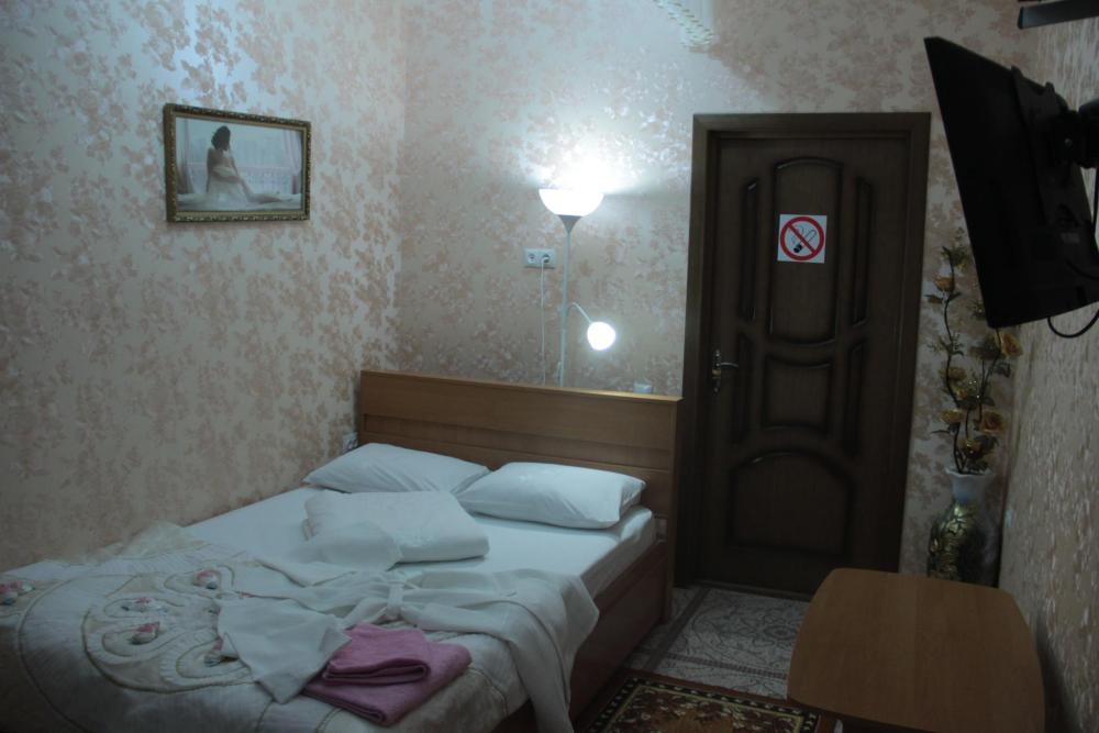 Звукоизолированный одноместный номер с 1 двуспальной кроватью, холодильником, кондиционером, собственной ванной комнатой и посудой.