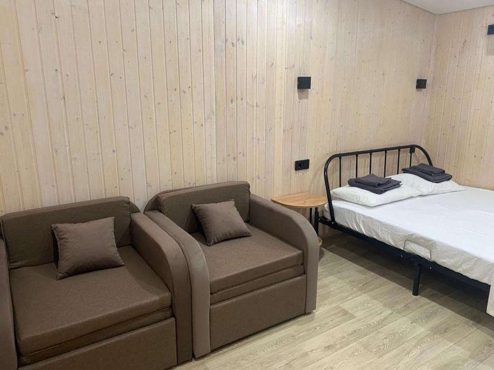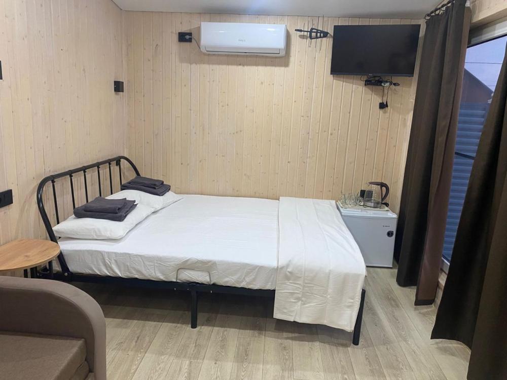 Общая площадь 18 кв.м. для размещения до 4-х гостей. Оснащение: двухспальная кровать и два раскладных кресла, сплит-система, противомоскитная сетка, телевизор с плоским экраном, чайник. В ванной комнате: душ, банные полотенца, фен, гигиенические средства.