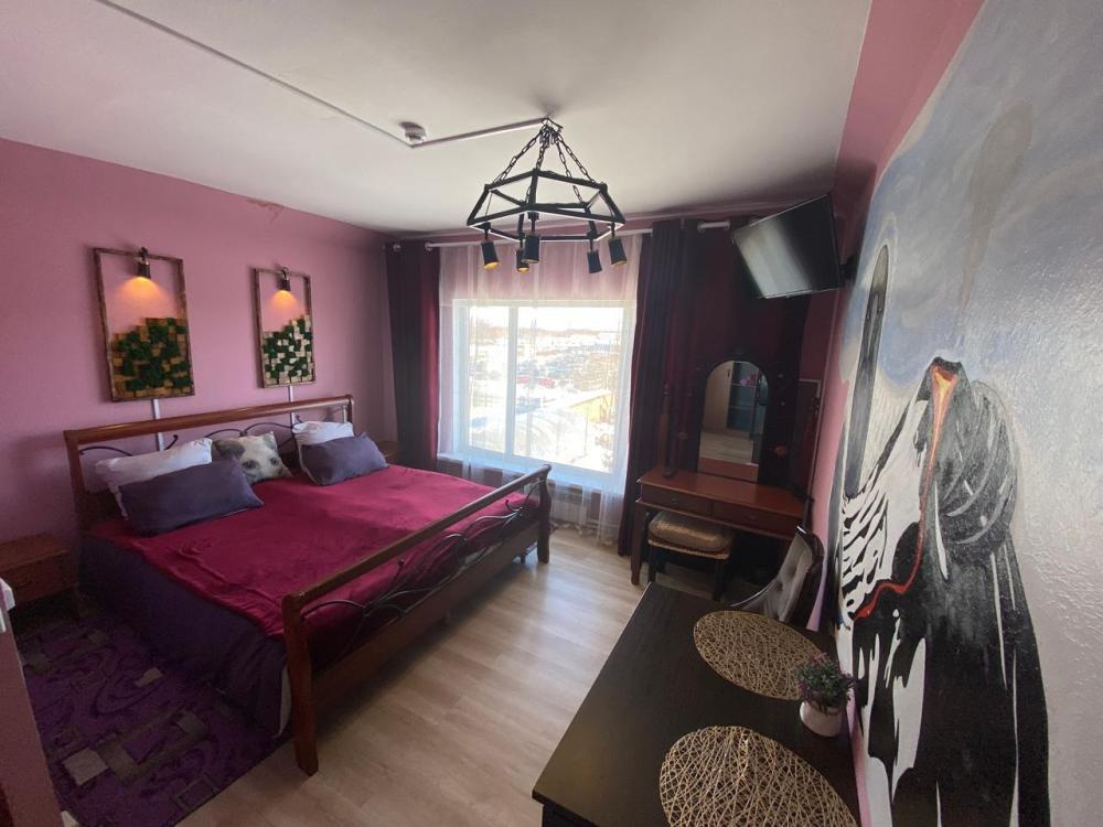 Гостевая комната "Боярышник" 2-х местная комната, расположена на 3 этаже гостевого дома - самый любимый номер гостей. Атмосферная комната с живописной картиной творца ворона и вулкана на стене и завораживающим видом Корякского вулкана из окна.