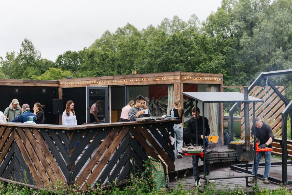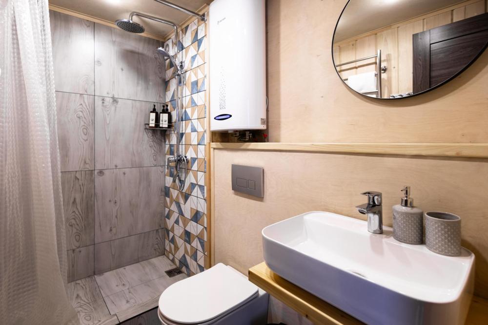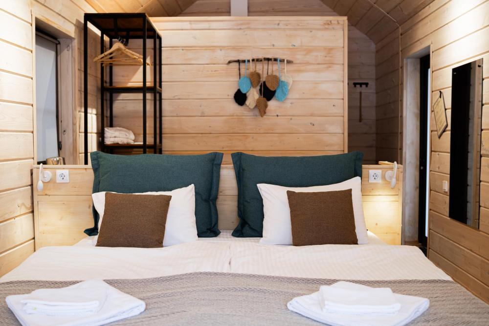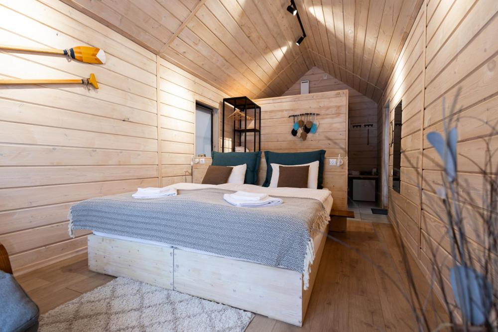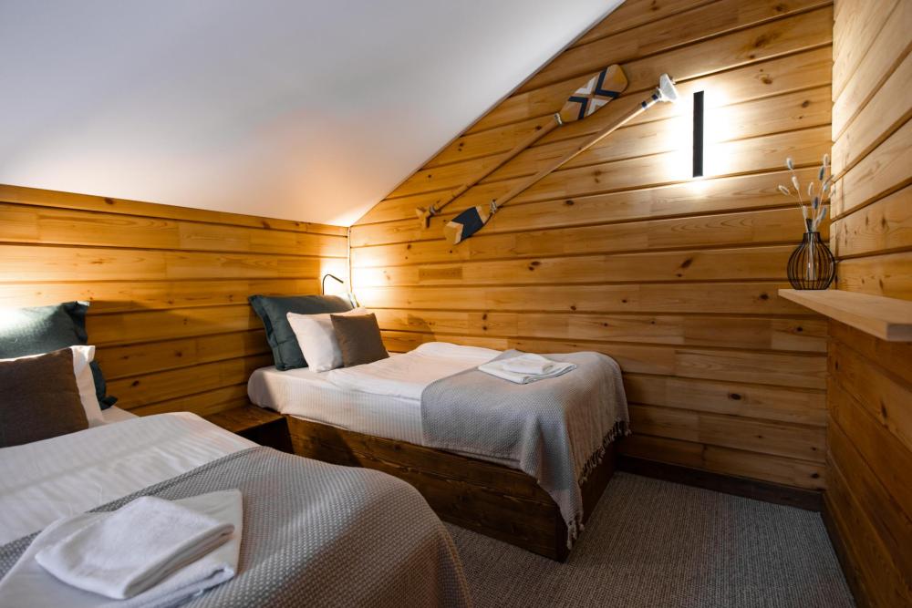 В доме две односпальные или одна двуспальная кровати, фен, душ, холодильник, чайник.