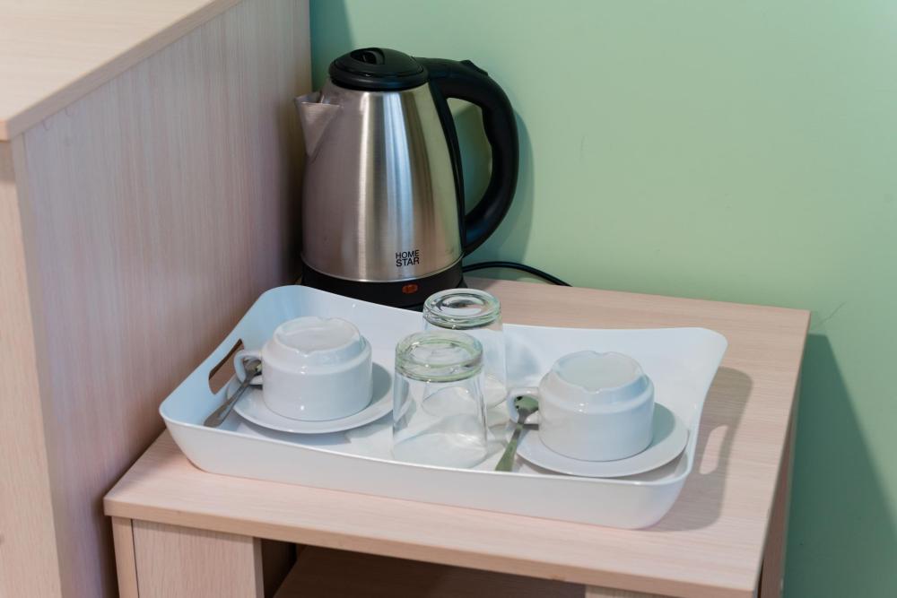 Комфортные однокомнатные номера, оборудованные двумя раздельными кроватями размером 90*200, кондиционером, телевизором, холодильником, чайником, полным санузлом в номере. Куллер с горячей/холодной водой находится на этаже. Фен предоставляется по запросу. Детская кроватка доступна по запросу бесплатно (при наличии свободной). Без дополнительной платы, по запросу предоставляются косметически принадлежности: шампунь, гель, зубной набор. Отличный вариант для отдыха в ожидании перелета.