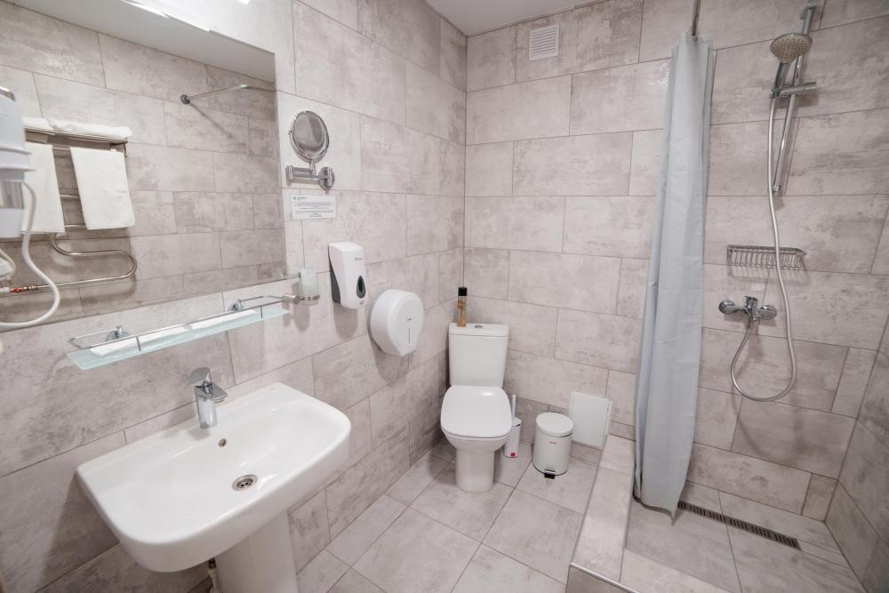 Комфортные секционные номера, оборудованные большой кроватью размером 160*200. Просим обратить ВНИМАНИЕ, что санузел и душевая находятся в секции на 2 номера. Фен предоставляется по запросу. Детская кроватка доступна по запросу бесплатно (при наличии свободной). Без дополнительной платы, по запросу предоставляются косметически принадлежности: шампунь, гель, зубной набор.