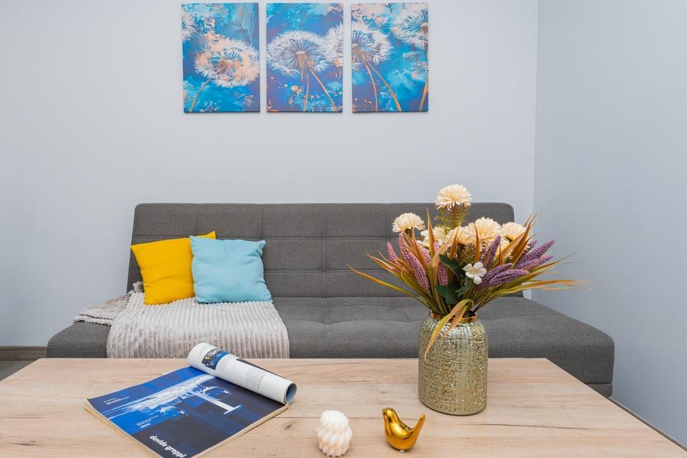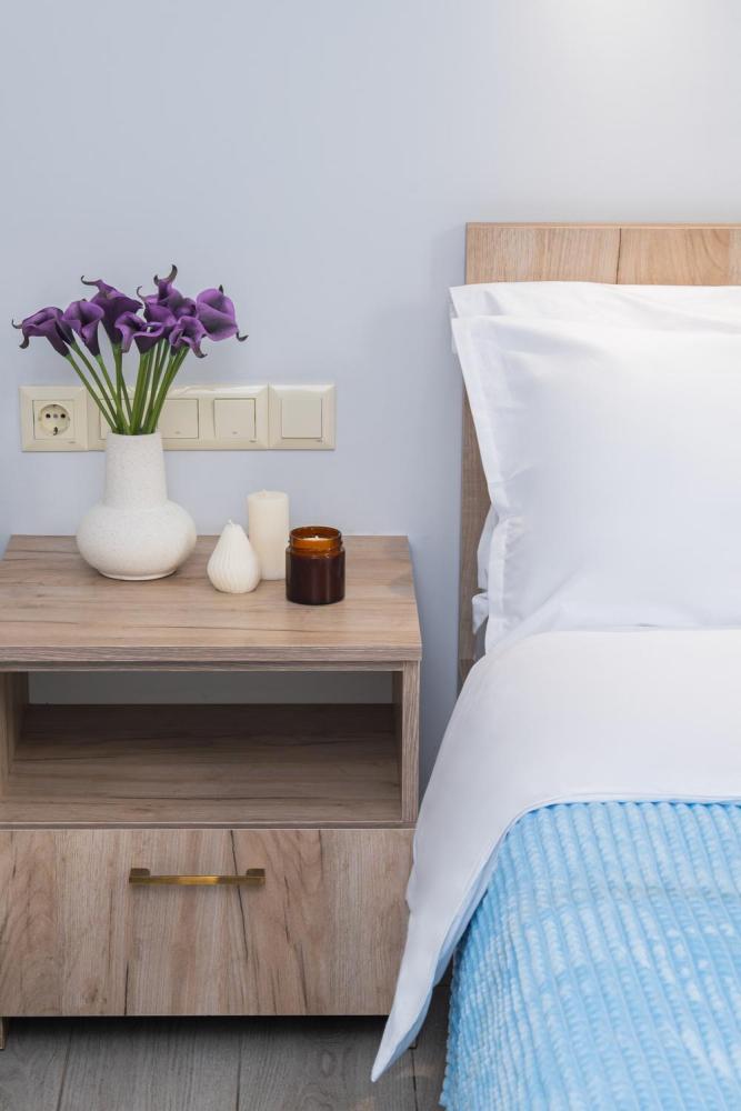 Современная и уютная квартира в малом центре города площадью 56 кв.м. В квартире 1 санузел и открытый балкон. Квартира оборудована всей необходимой мебелью, техникой и посудой. Также предоставляются постельное белье, полотенца, утюг и гладильная доска, фен.