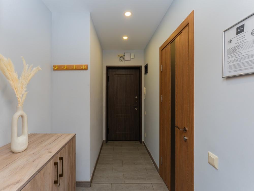 Квартира с одной спальней. В здании есть 3 лифта, в квартире есть все необходимые удобства, диван раскладной, могут разместиться 3 взрослых и 1 ребенок. Кровать большая двуспальная 150х180. Есть балкон.