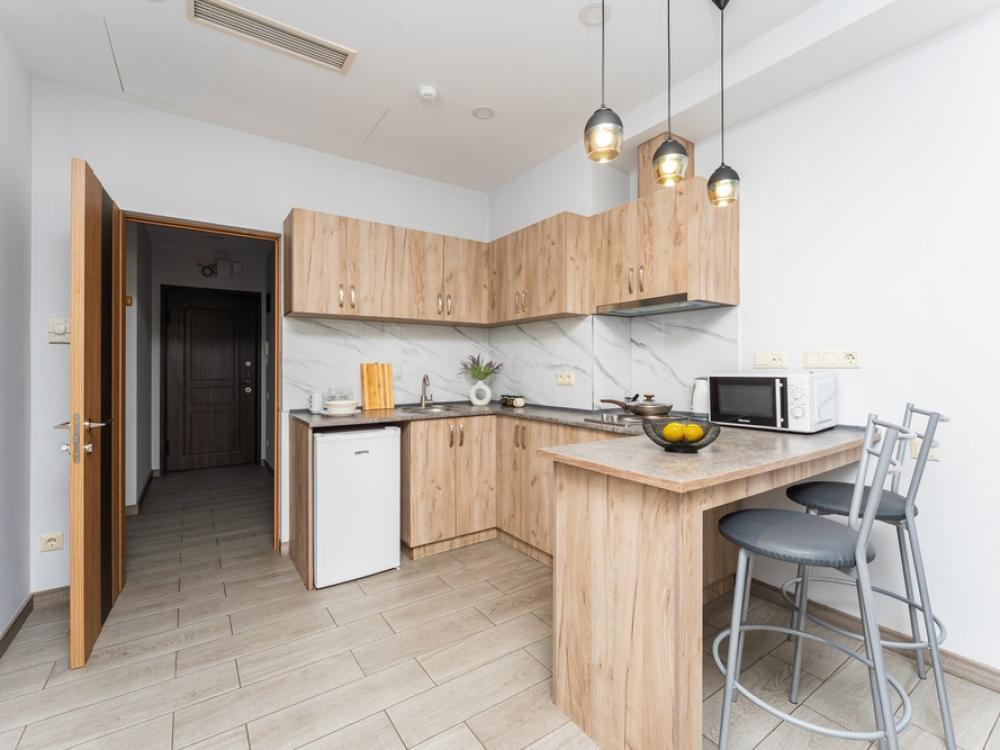 Эта студио-квартира находится в самом центре Еревана. В здании есть 3 лифта. В квартире есть все необходимые удобства. Кровать большая двуспальная 150х180. Есть французский балкон, на котором можно курить.