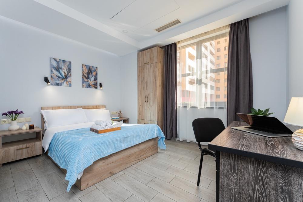 ✅ Здание - новостройка ✅ Круглосуточный самостоятельный заезд/ Охрана 24/7 ✅ Квартира-студия ✅ 50 кв. метров ✅ 18-й этаж, лифт ✅ Балкон ✅ Система отопления/охлаждения ✅ Полностью оборудованная кухня ✅ Кофе/чай/сахар/соль/перец/ватные палочки и диски в качестве комплимента ✅ Гигиенические принадлежности (туалетная бумага, шампунь, гель для душа, мыло) ✅ Постельное белье и полотенца премиум качества ✅ Фен, утюг и гладильная доска Уютная квартира с отличным расположением — всего в 5 минутах ходьбы от Площади Республики. Рядом — два круглосуточных супермаркета, отличные кафе и рестораны. Идеальный вариант для комфортного отдыха в центре города.