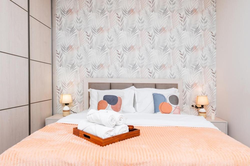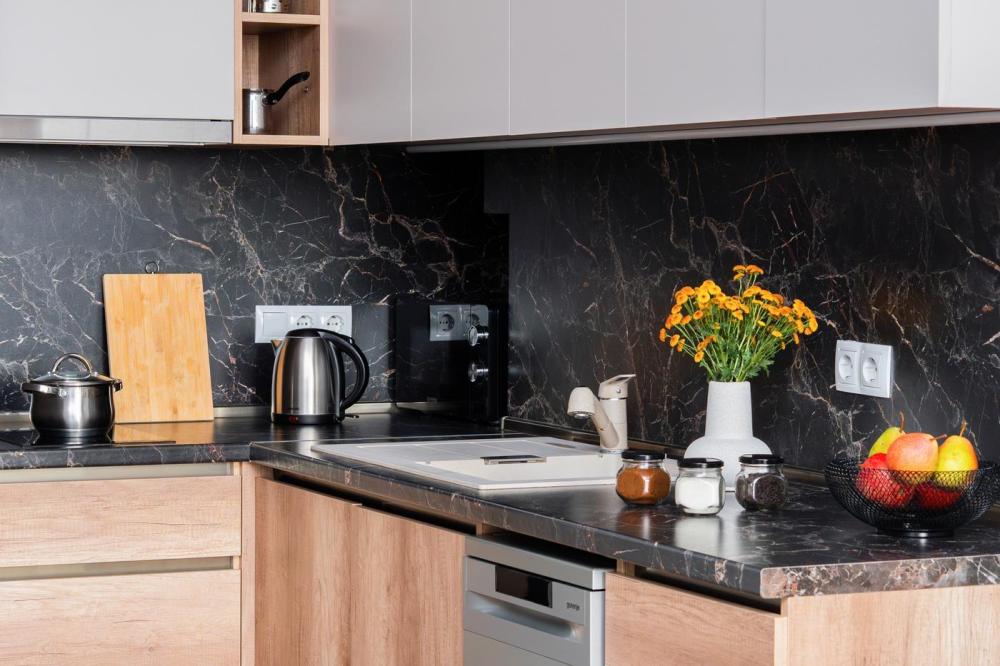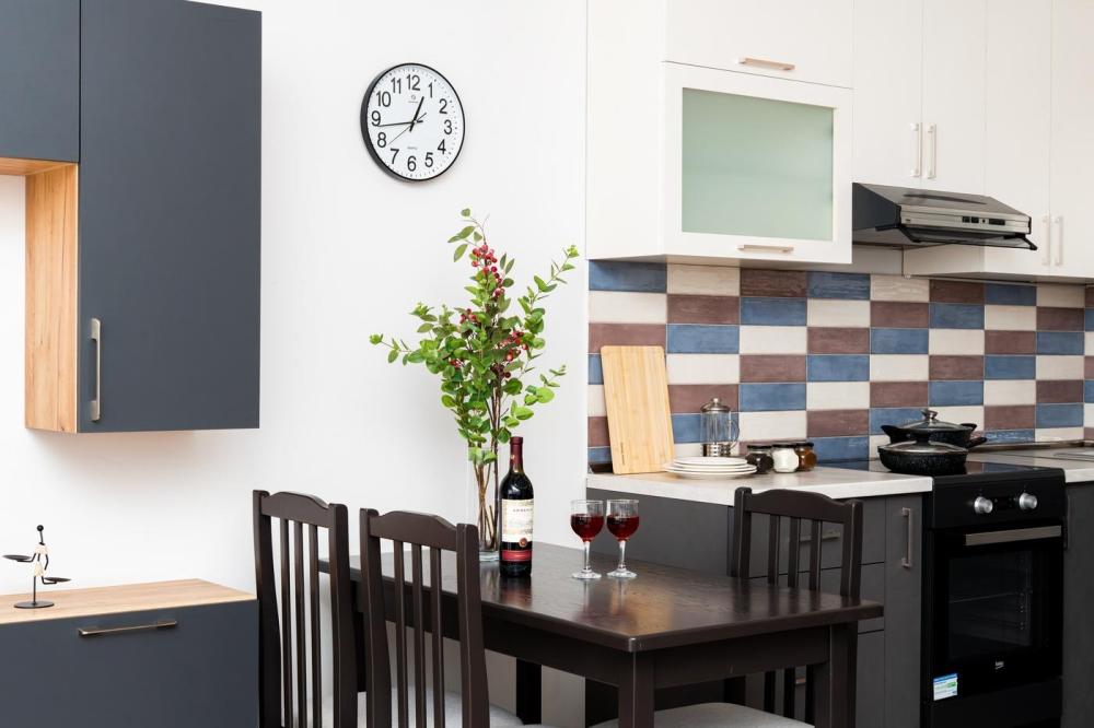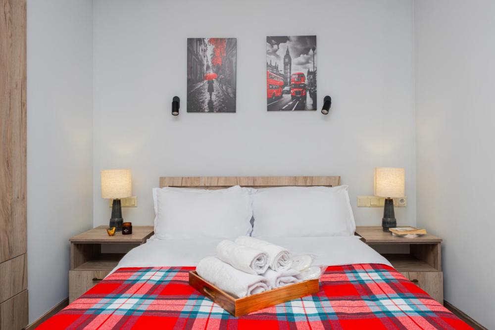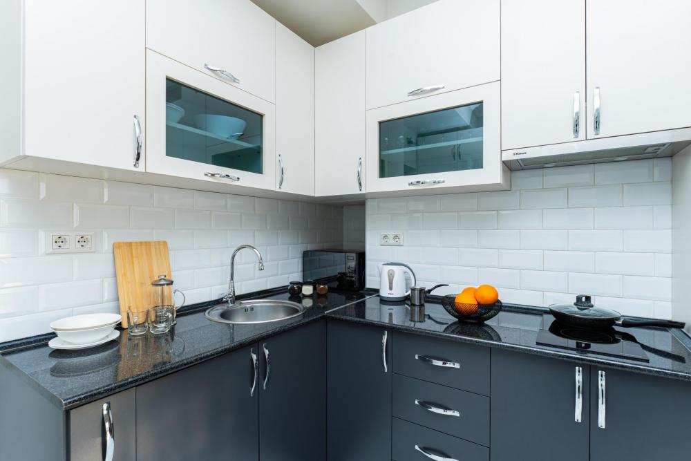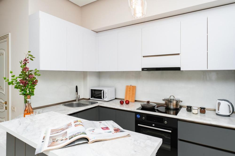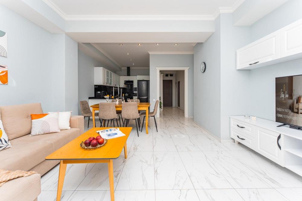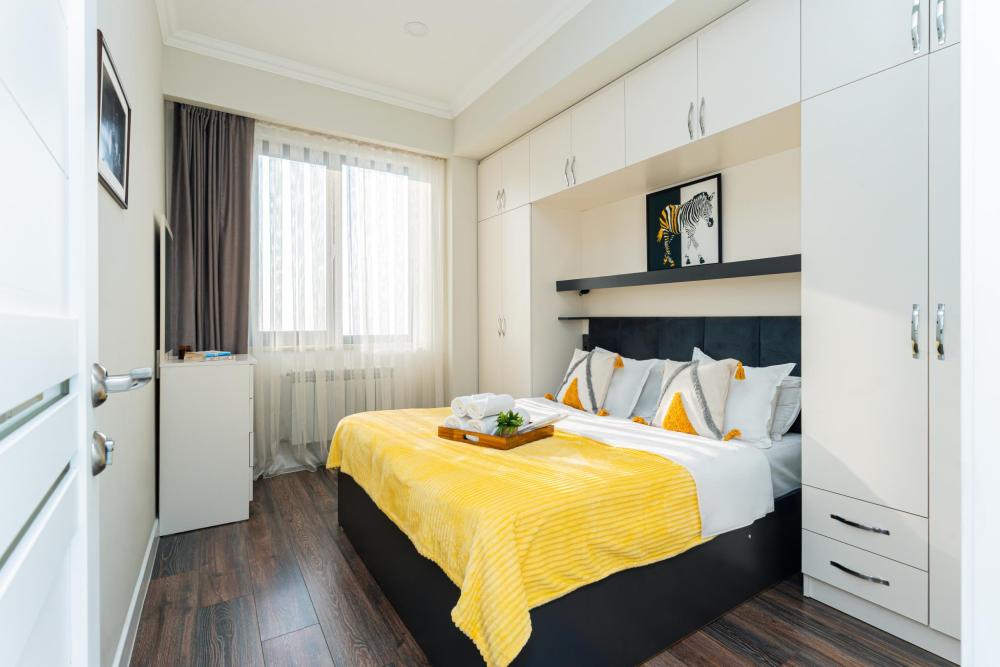 Стильная квартира c отдельной спальней. В здании есть 3 лифта, в квартире есть все необходимые удобства , диван раскладной, могут разместиться 3 взрослых и 1 ребенок . Кровать большая двуспальная 150х180.