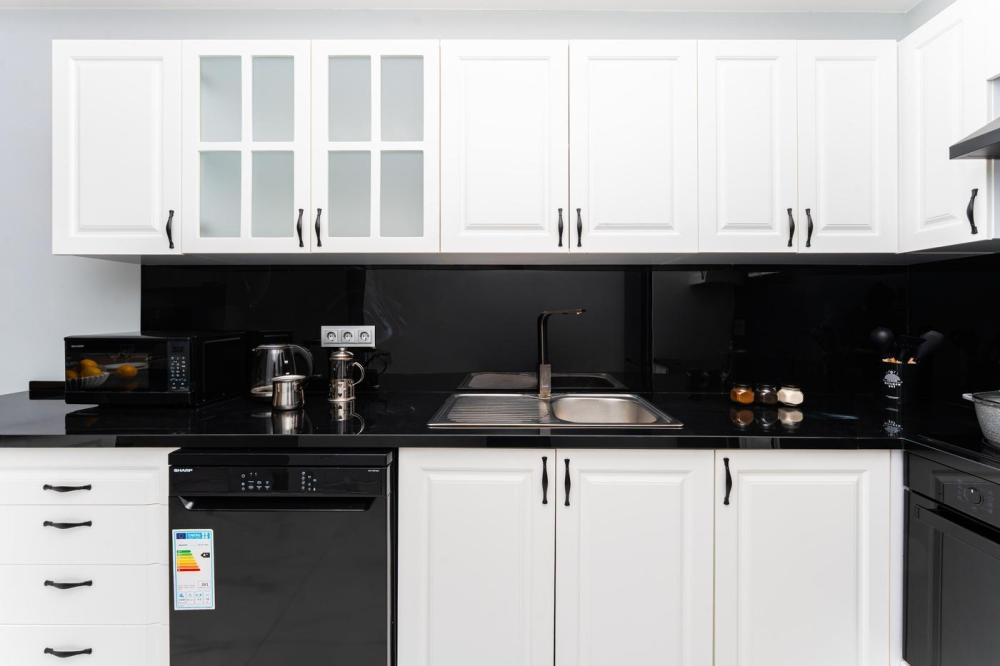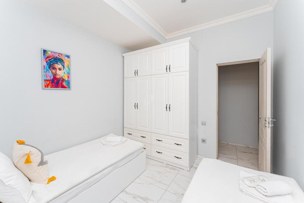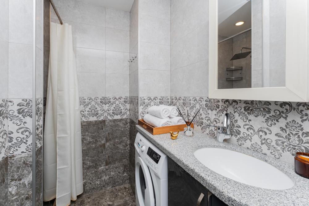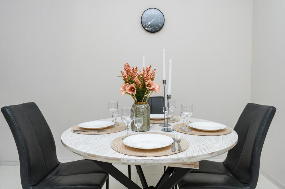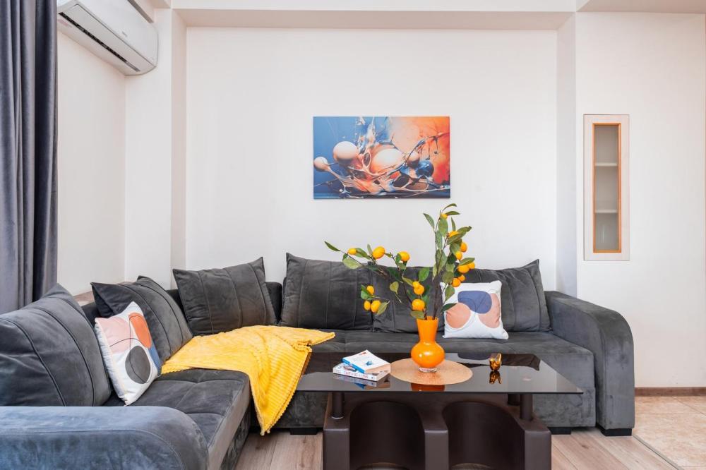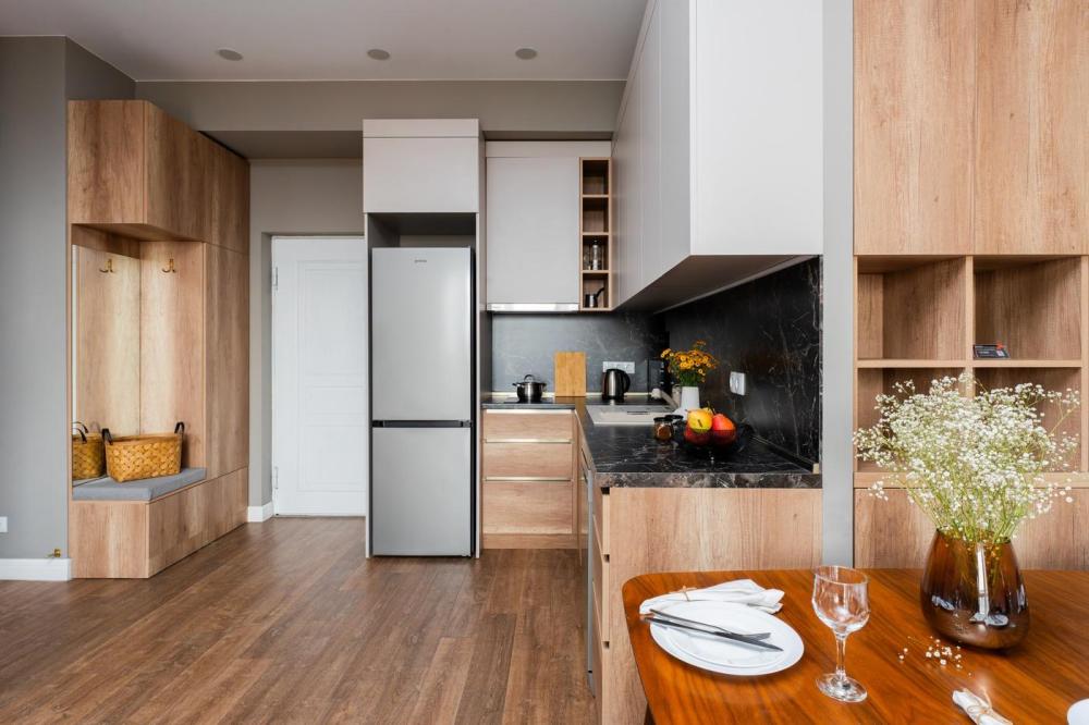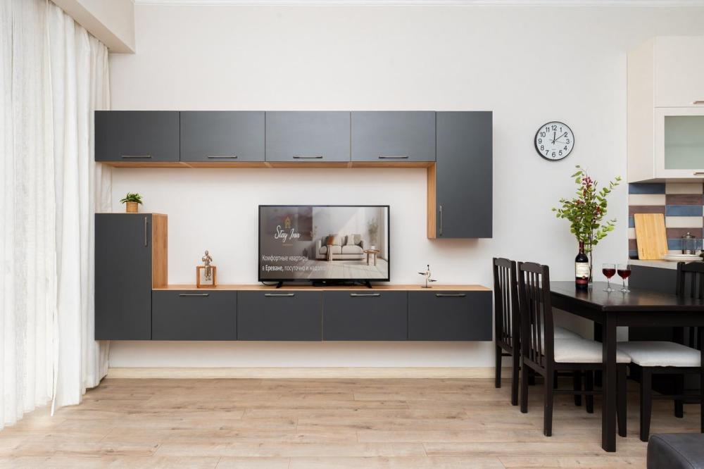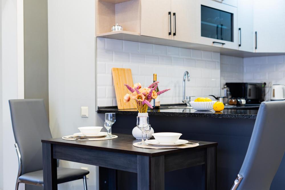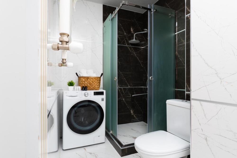 Стильная квартира c отдельной спальней. В здании есть 3 лифта, в квартире есть все необходимые удобства , диван раскладной, могут разместиться 3 взрослых и 1 ребенок . Кровать большая двуспальная 150х180.
