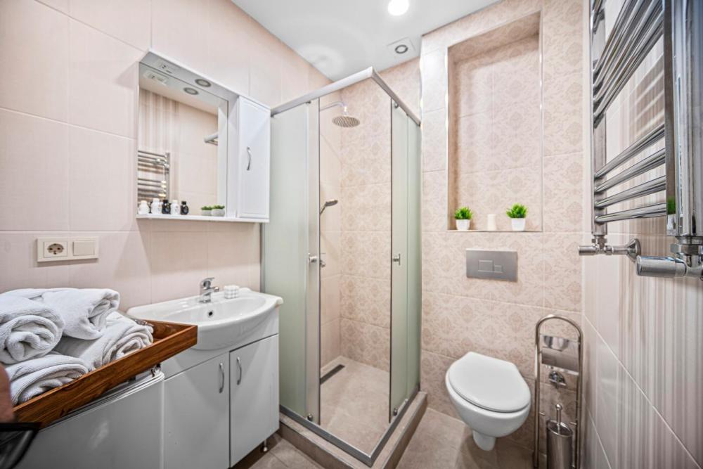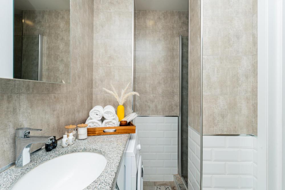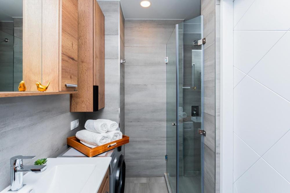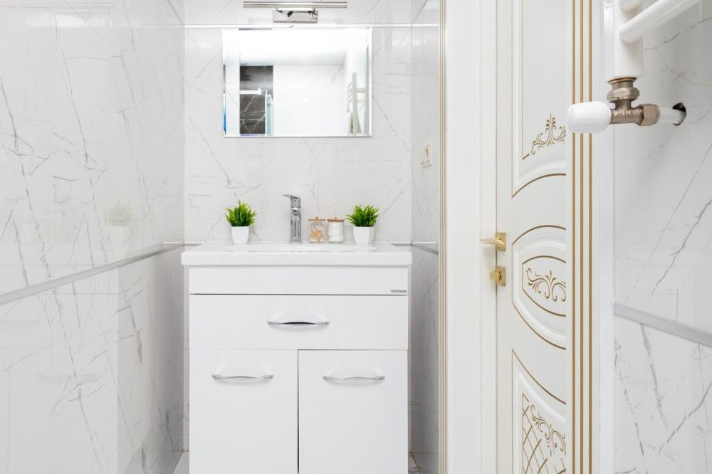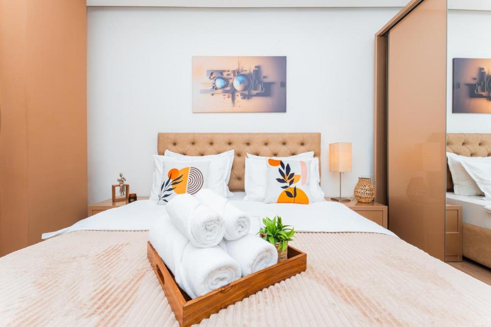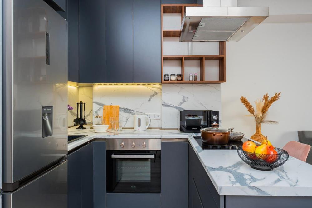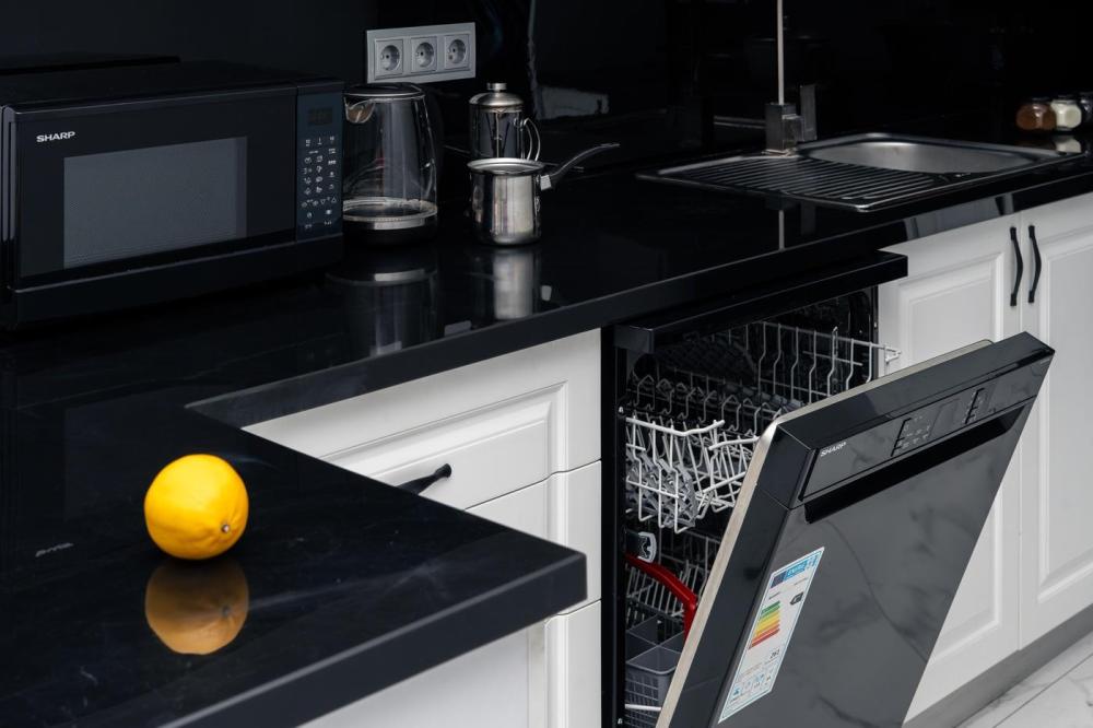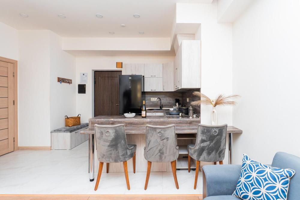 Стильная квартира c отдельной спальней. В здании есть 3 лифта, в квартире есть все необходимые удобства , диван раскладной, могут разместиться 3 взрослых и 1 ребенок . Кровать большая двуспальная 150х180.