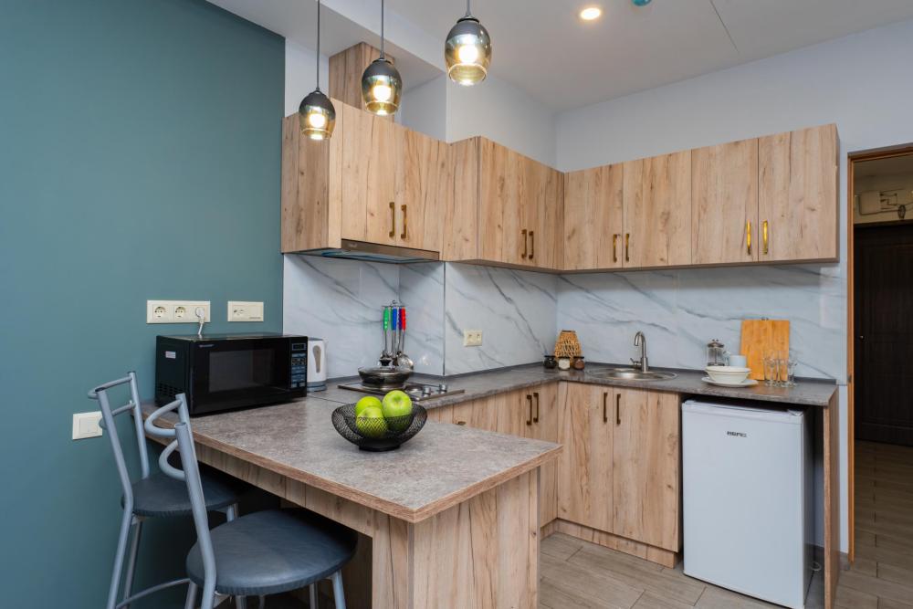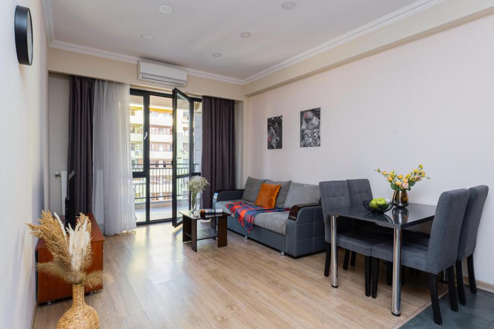Уютная однокомнатная квартира находится на 4 этаже новостройки на улице Кохбаци 16. Площадь квартиры около 45 кв м, в квартире есть все необходимое для комфортного проживания - гостиная с диваном и ТВ, кухня со всеми принадлежностями для готовки еды , ванная комната с душем , спальня с двухместной кроватью, стиральная машина, фен, утюг, WiFi и т.д. Постельное белье и полотенца в квартире также предоставляются.
