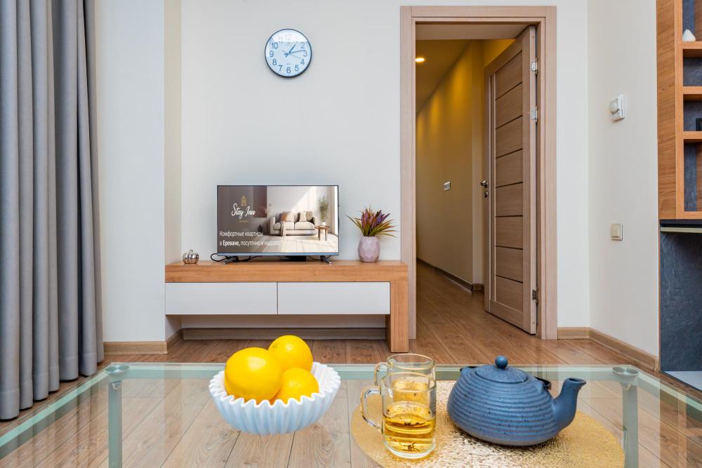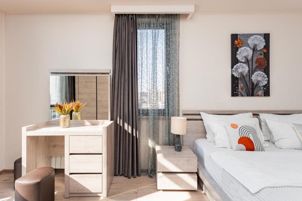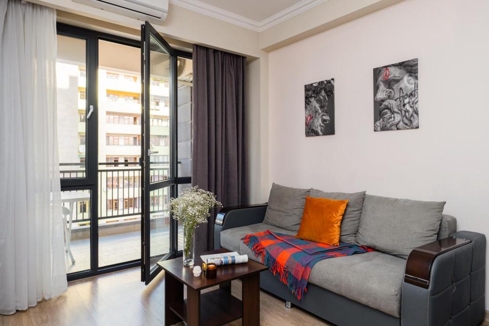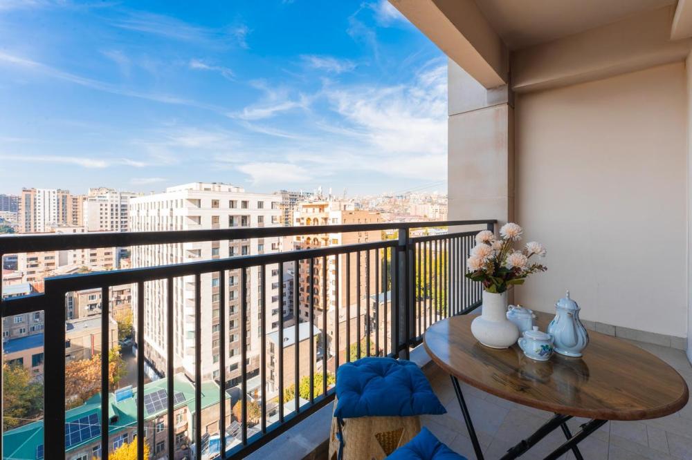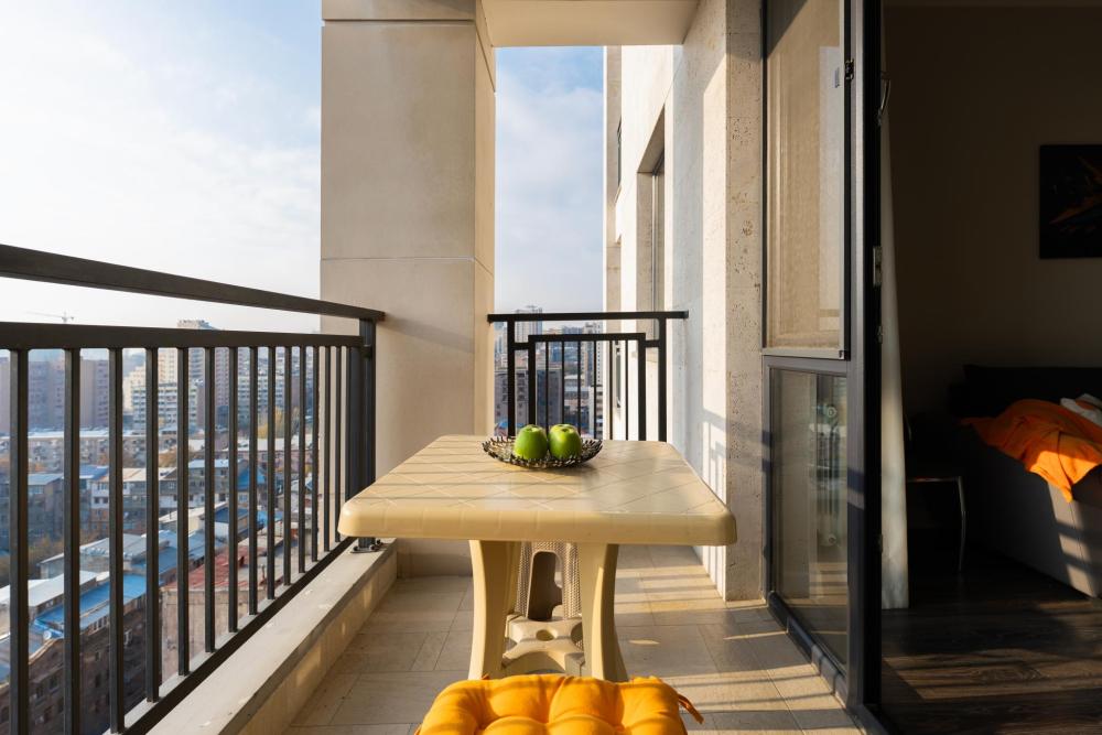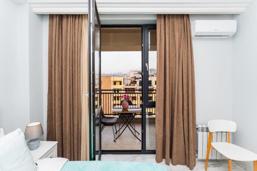Эта студио-квартира находится в самом центре Еревана. В здании есть 3 лифта. В квартире есть все необходимые удобства. Кровать большая двуспальная 150х180. Есть французский балкон, на котором можно курить.