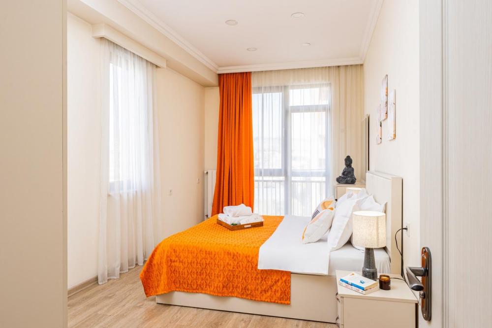 Уютная 1-комнатная квартира в центре города на 8-ом этаже. Квартира имеет 50 кв площадь, здесь 1 спальня с большой двухместной кроватью, также балкон с видом на город 8 ого этажа, кухня со всеми принадлежностями, смарт TV и wifi, также предоставляются постельное белье и полотенца.