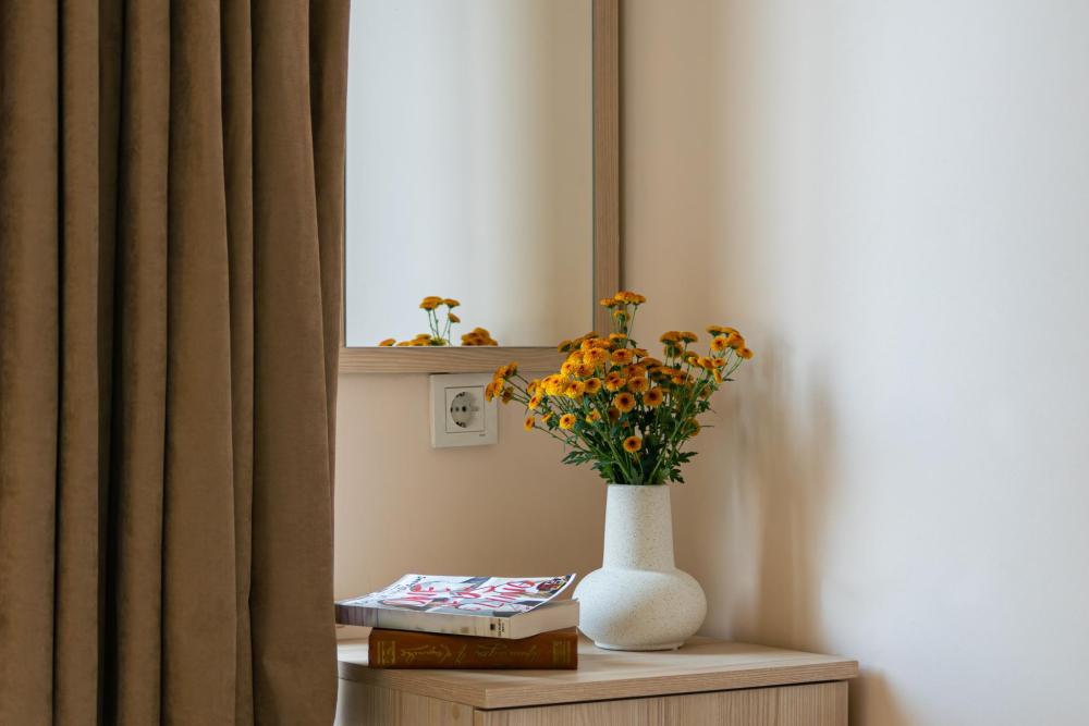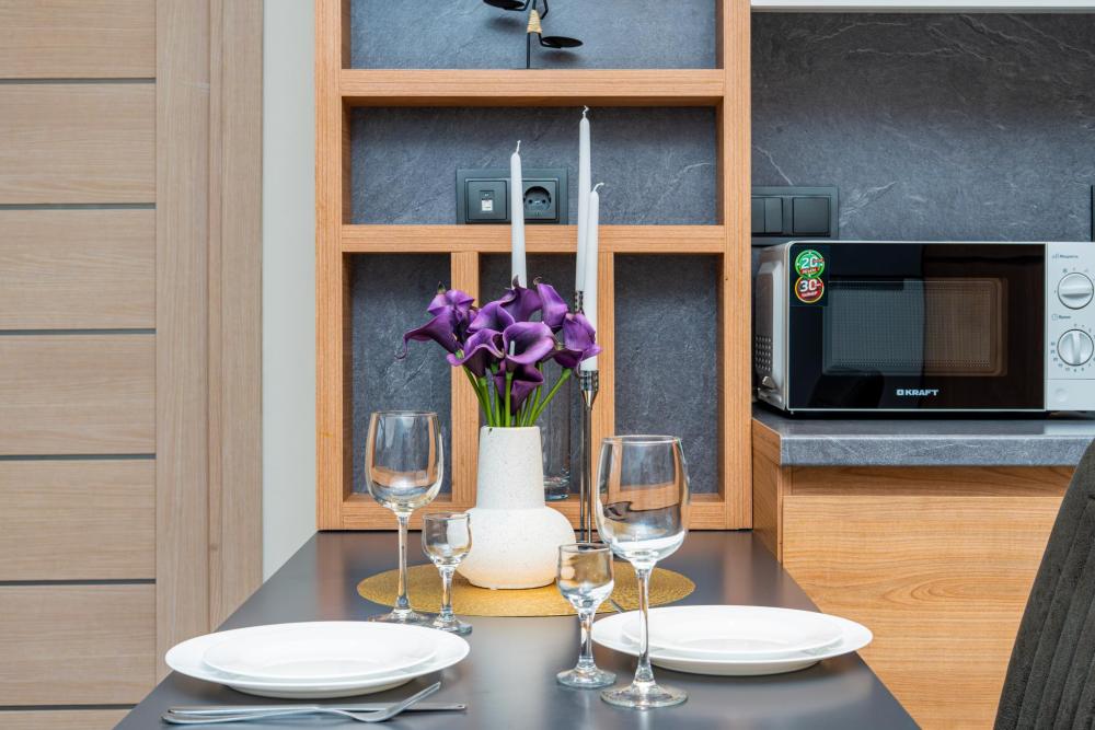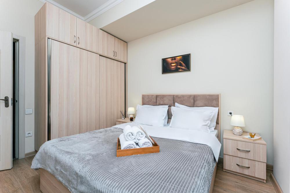 Уютная и свежая квартира находится в самом центре города - в новостройке на 9-ом этаже. Квартира оснащена всеми удобствами, с 1 большой спальней с 2х местной кроватью, с балконом, феном, утюгом, телевизором, кухонными принадлежностями, интернетом и т. д.