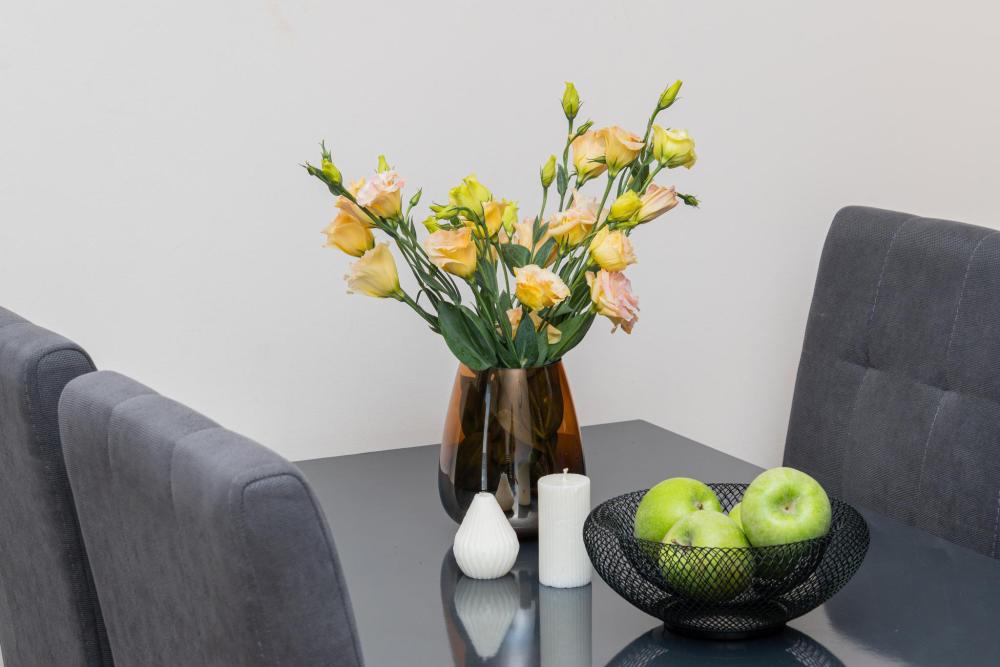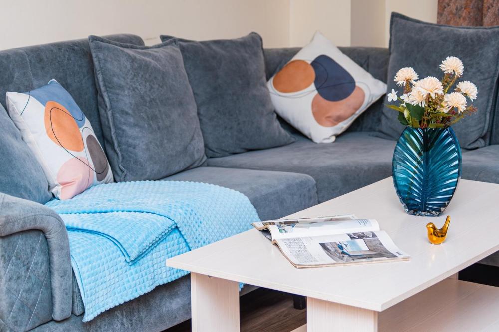 Современная и уютная квартира в малом центре города площадью 56 кв.м. В квартире 1 санузел и открытый балкон. Квартира оборудована всей необходимой мебелью, техникой и посудой. Также предоставляются постельное белье, полотенца, утюг и гладильная доска, фен.