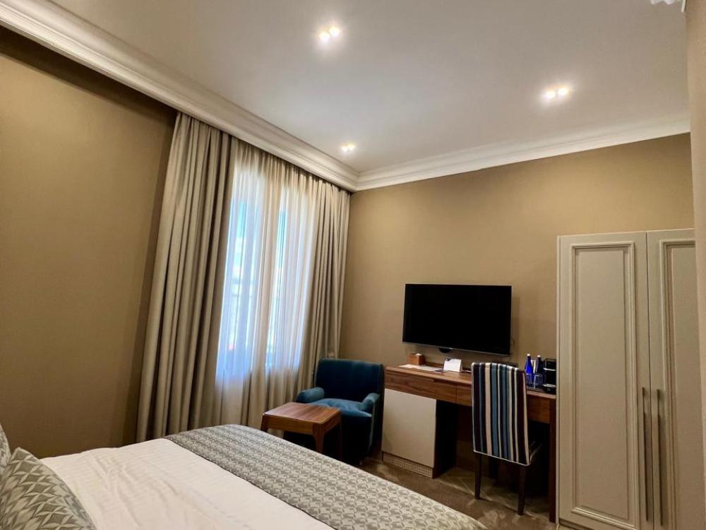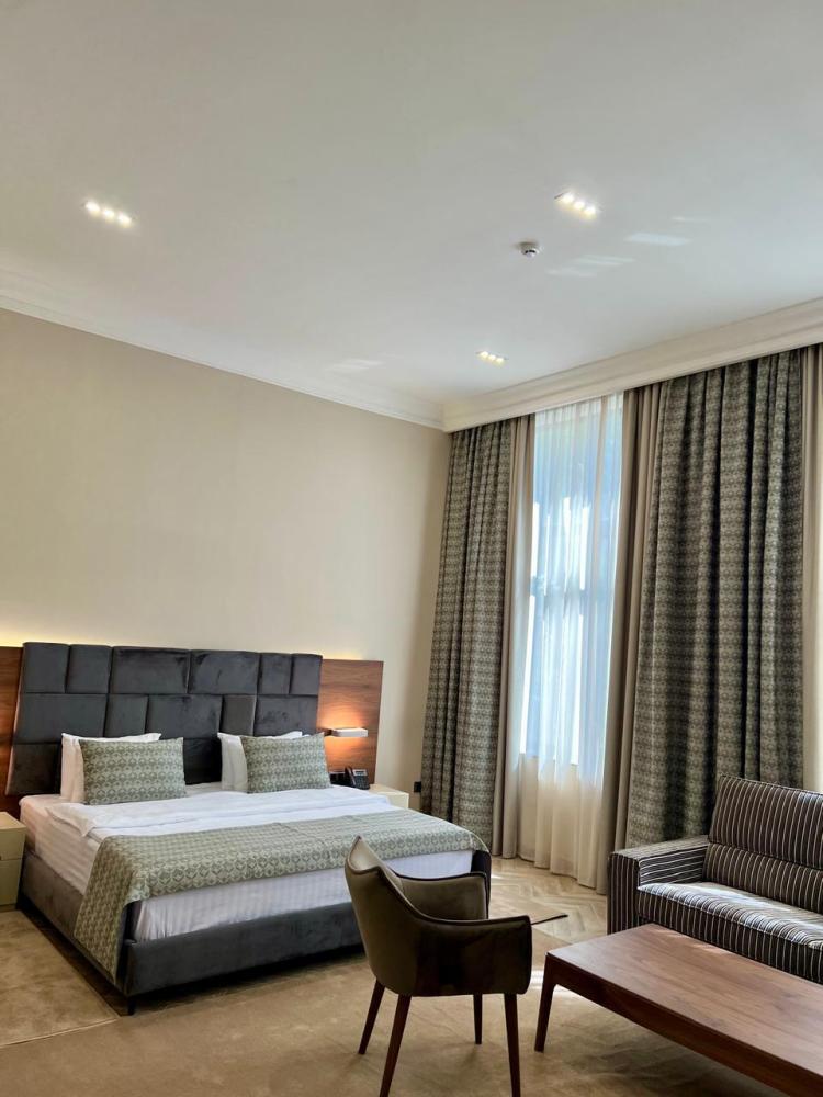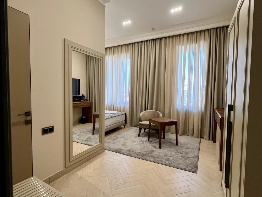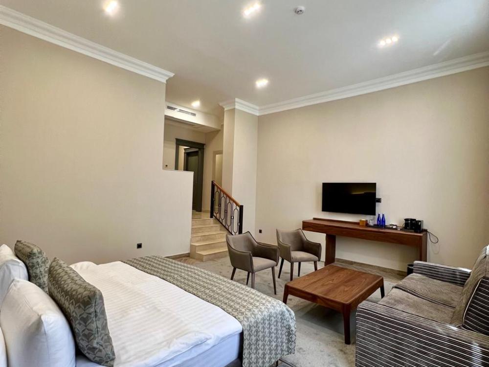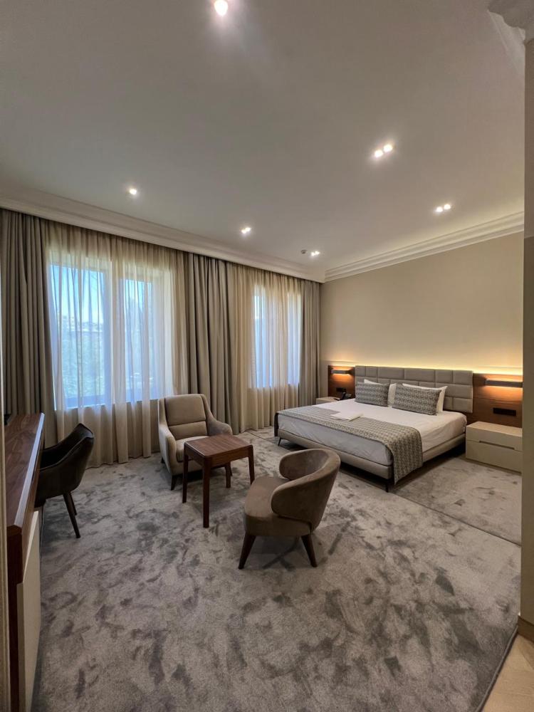 Роскошный номер с кроватью размера "king-size", кондиционером, гостиным уголком, телевизором с плоским экраном, высокоскоростным Wi-Fi, принадлежностями для чая/кофе и письменным столом. В ванной комнате с душем предоставляются бесплатные туалетно-косметические принадлежности и фен.