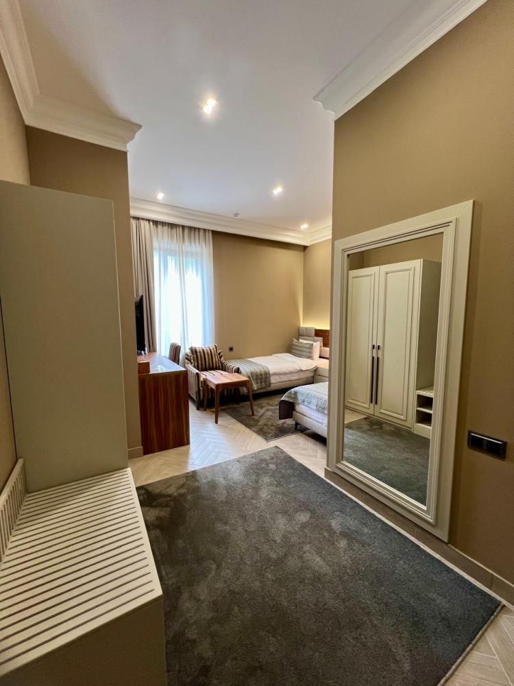 Улучшенный Двухместный номер с двумя односпальными кроватями и диван кроватью Просторный номер обеспечивающей максимальное удобство и гибкость размещения с постельным бельём премиум-класса. Также в номере — кресло, телевизор с плоским экраном, высокоскоростной Wi‑Fi, мини-холодильник, элегантная ванная комната душевая кабина с туалетными принадлежностями. Гостям предоставляются халаты, тапочки, фен, сейф в шкафу, а также бесплатные чай, кофе, сахар и чайник в номере.