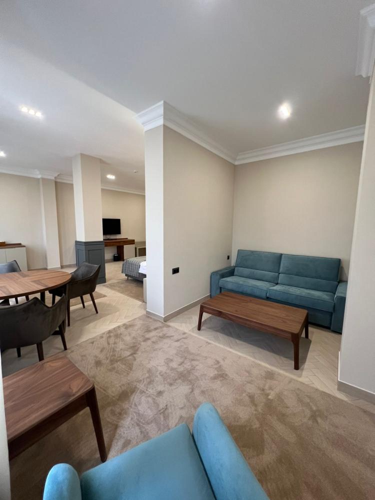 Двухкомнатный люкс (отдельные комнаты). В номере имеется роскошная двуспальная кровать (king-size) и две односпальные кровати, возможно добавление дополнительной (диван-кровать), с постельным бельём премиум-класса. Также в номере — зона отдыха с диваном-кроватью и двумя креслами, телевизор с плоским экраном, высокоскоростной Wi‑Fi, мини-холодильник, элегантная ванная комната с туалетными принадлежностями. Гостям предоставляются халаты, тапочки, фен, сейф в шкафу, а также бесплатные чай, кофе, сахар и чайник в номере.