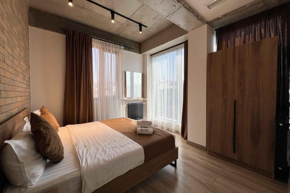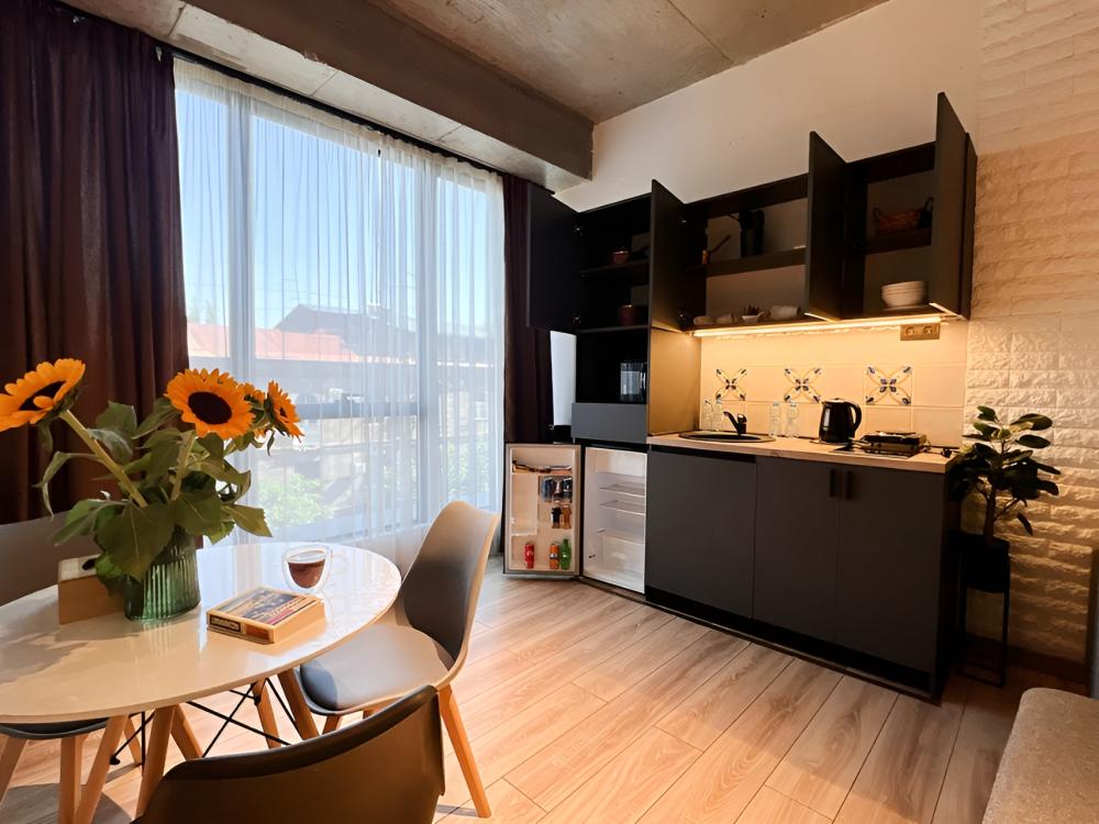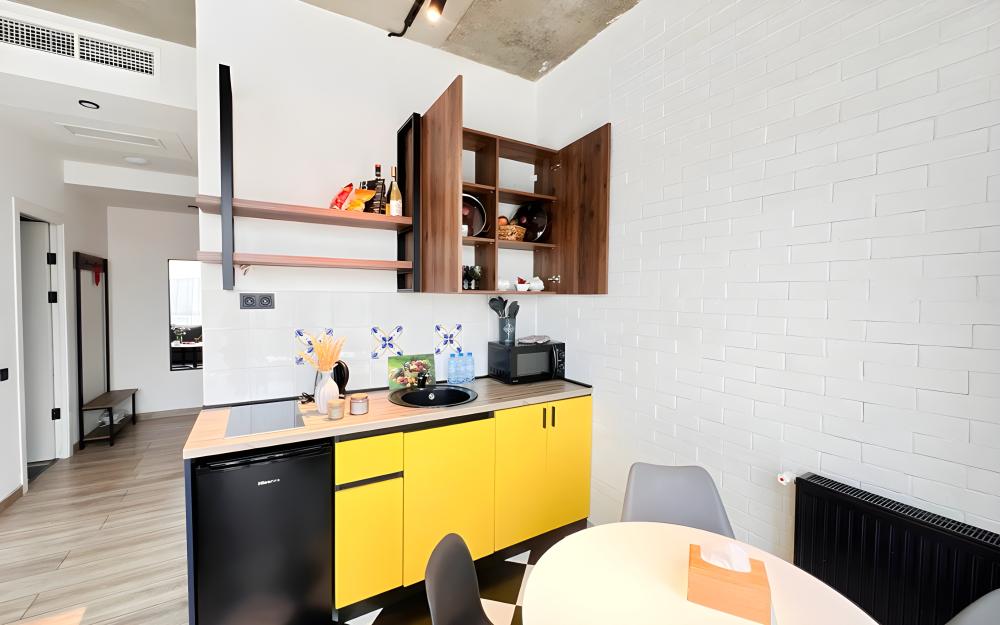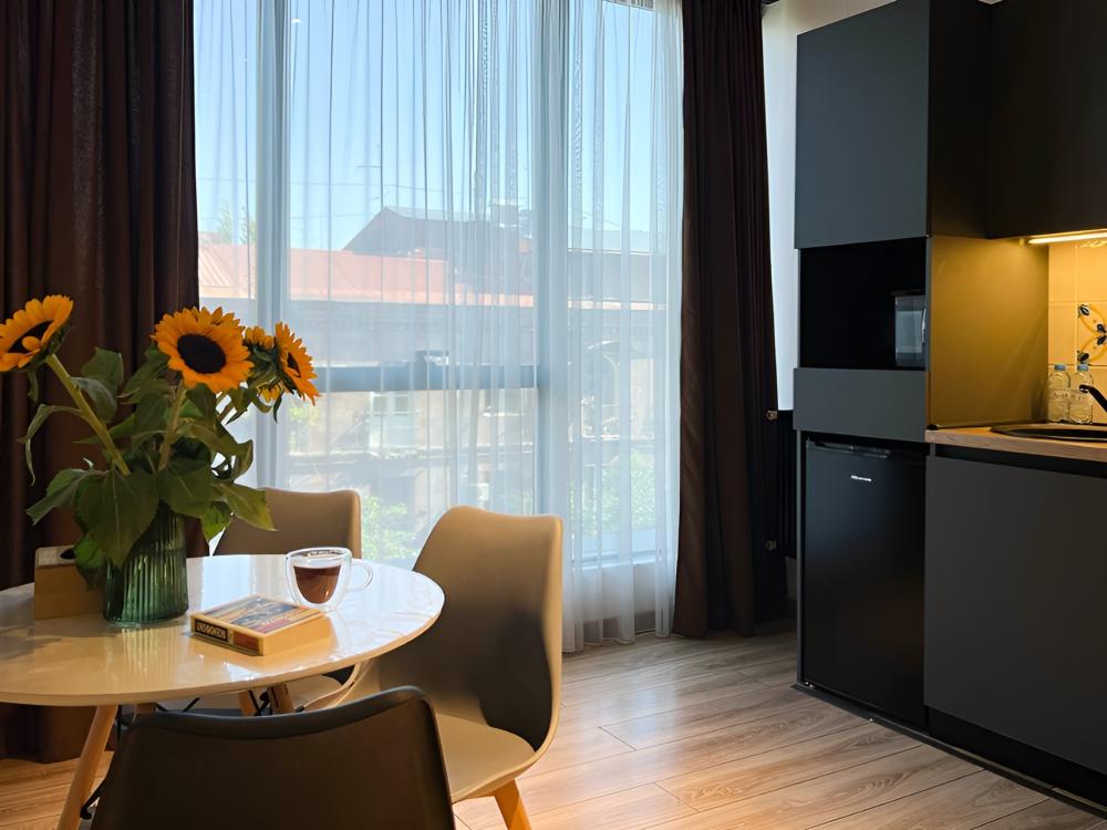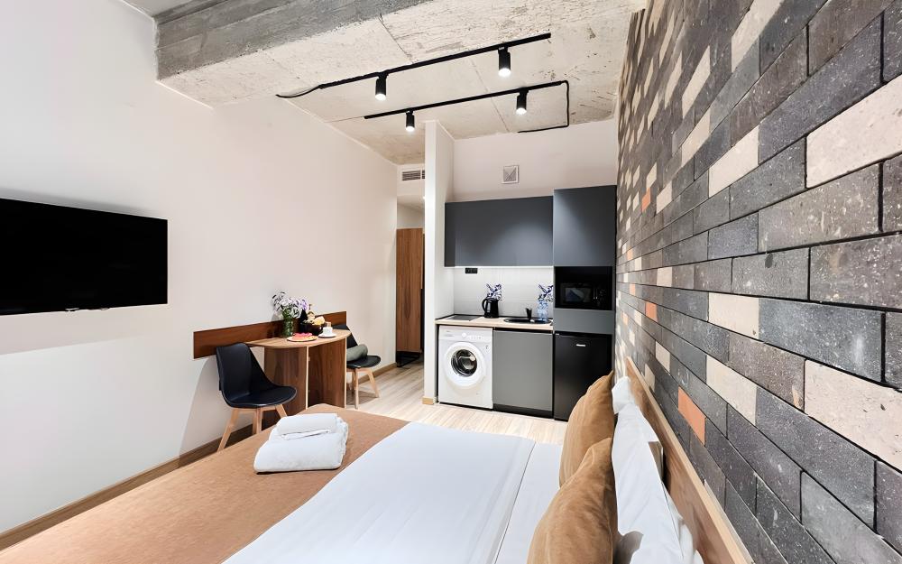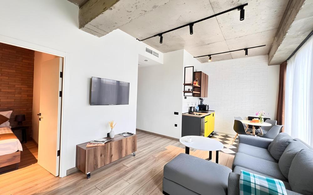 Апартаменты оборудованы современными удобствами, включая: мини-кухню с плитой, холодильником и необходимой посудой, собственную ванную комнату с душем, туалетными принадлежностями и свежими полотенцами, уютные кровати и качественное постельное бельё, кондиционер, плоский телевизор с местными и международными каналами, бесплатный Wi-Fi высокой скорости, шкаф и рабочее место, удобное для деловых гостей.