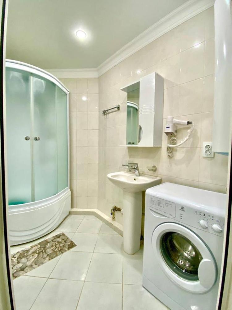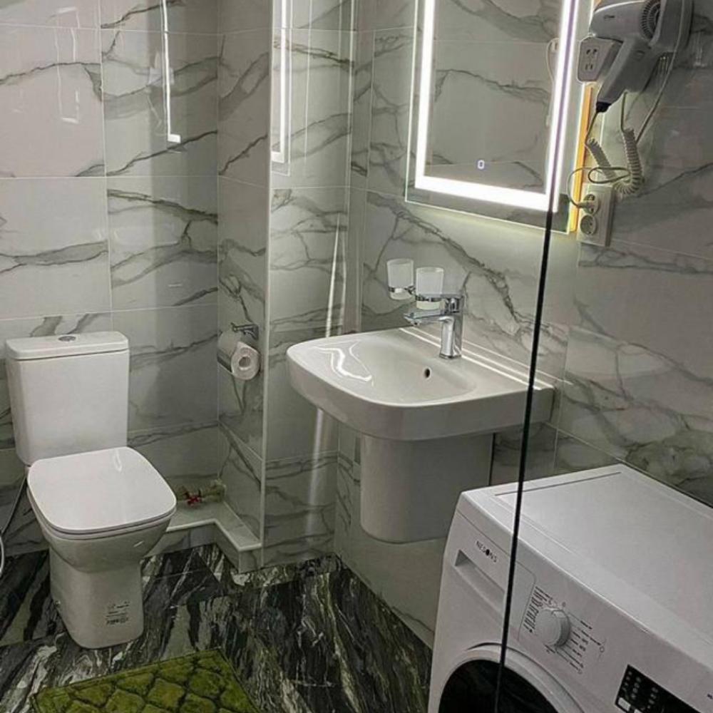В апартаментах есть все необходимое для комфортного проживания- фен, утюг, гладильная доска, сушилка, постельное белье, комплект полотенец, телевизор, посуда, стиральная машина, холодильник и др.