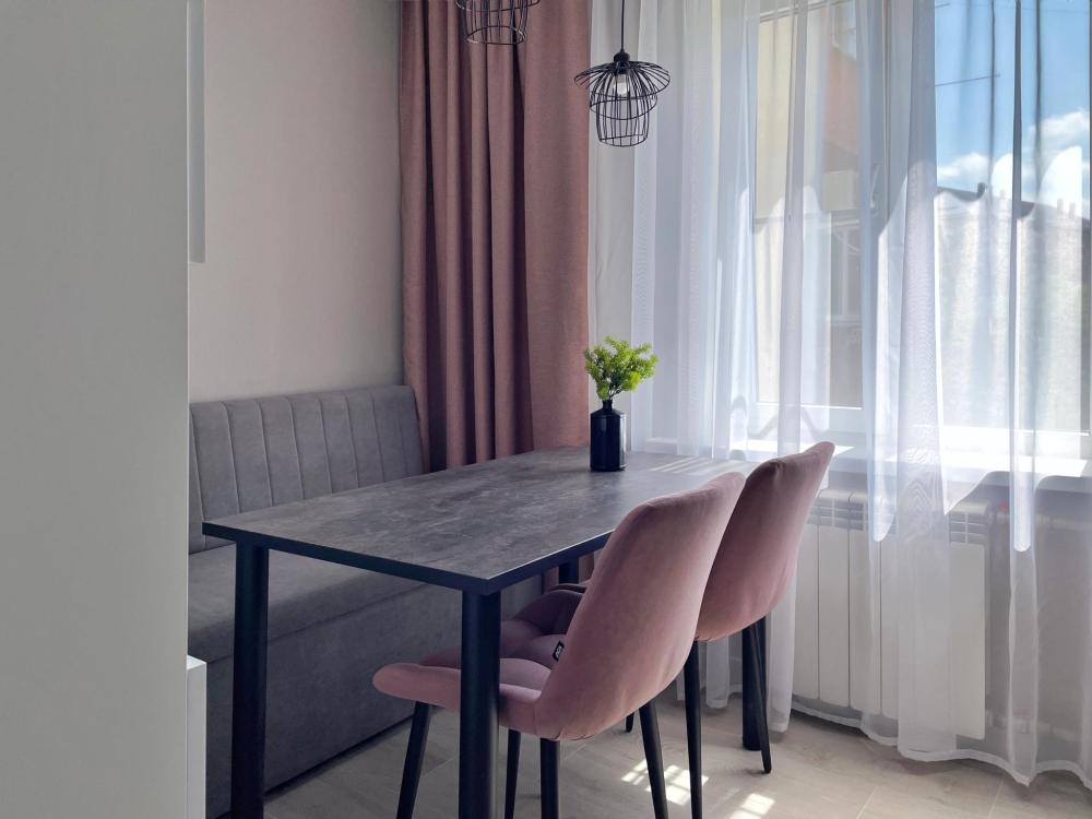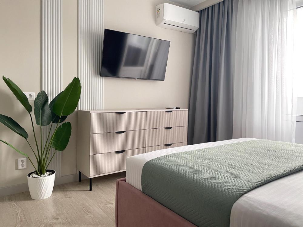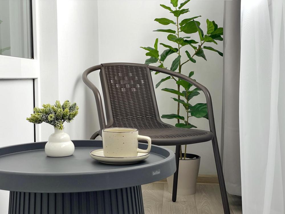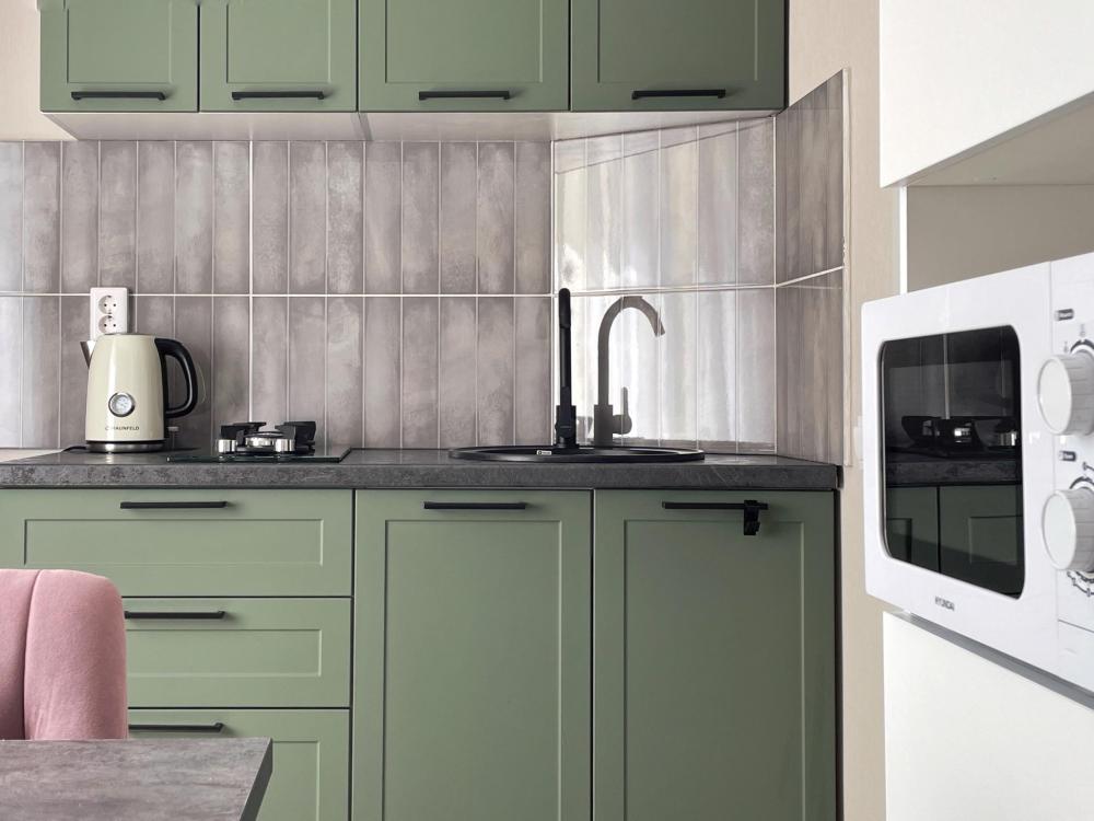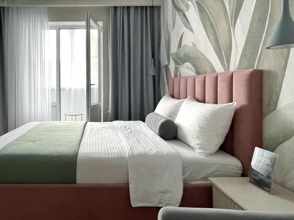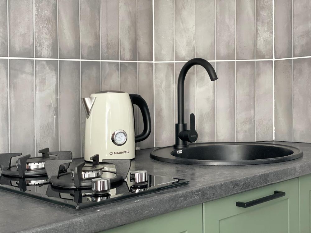 Просторный балкон станет любимым местом утреннего кофе с видом на природу Кавказских гор. Квартира предлагает комфортные условия размещения до четырех человек: двуспальная кровать (140×200 см), кресло-кровать (75×195 см), раскладной диван на кухне (140×175 см). В первый день проживания в качестве приветственного бонуса гостям предоставляются: чай, кофе, сахар, соль, шампунь, гель для душа, жидкое мыло, туалетная бумага, стиральный порошок (одна капсула), средство для мытья посуды.
